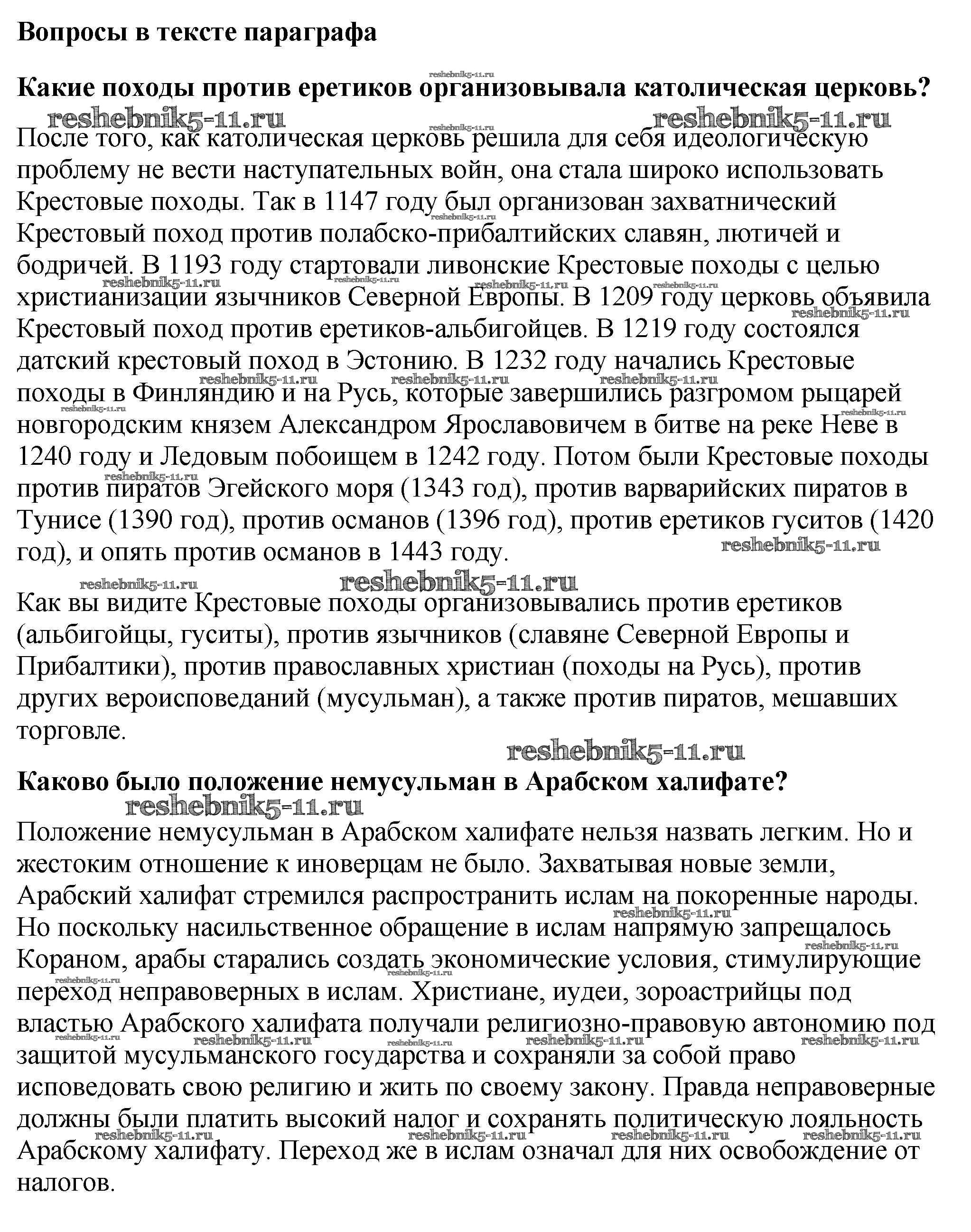 Готовая домашняя работа с ответами по Истории за 6 класс Агибалова, Донской Учебник Просвещение 2014 ФГОС - Вопросы в начале параграфа 1