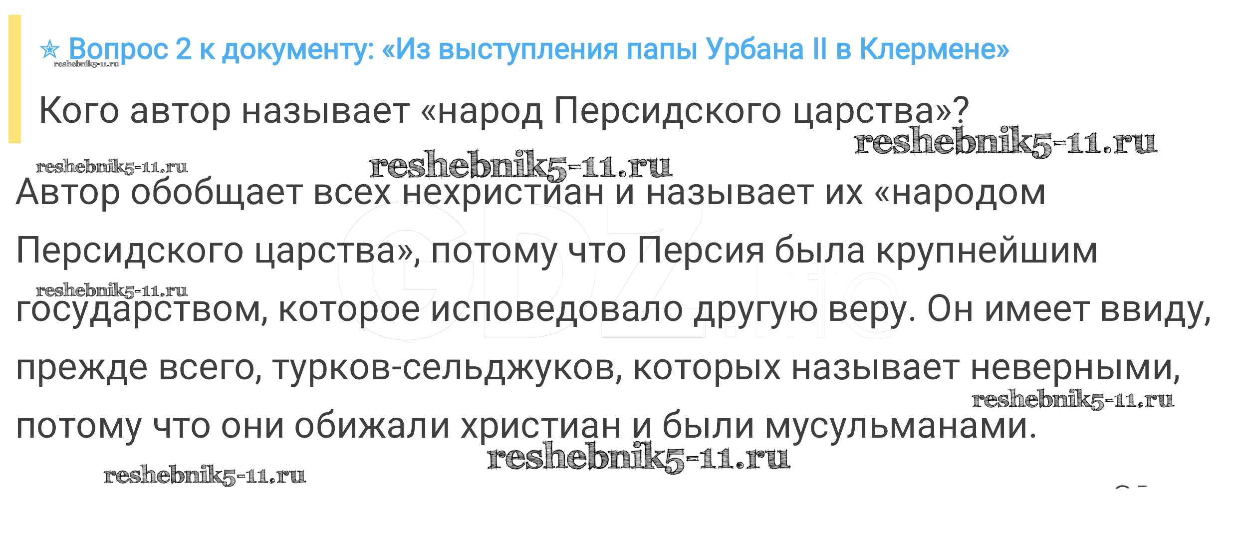 Готовая домашняя работа с ответами по Истории за 6 класс Агибалова, Донской Учебник Просвещение 2014 ФГОС - Вопросы к документу 2
