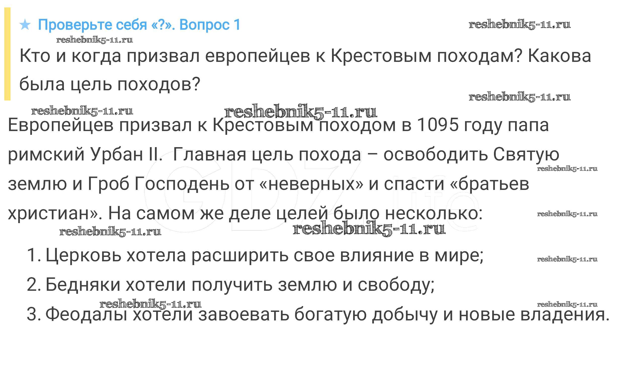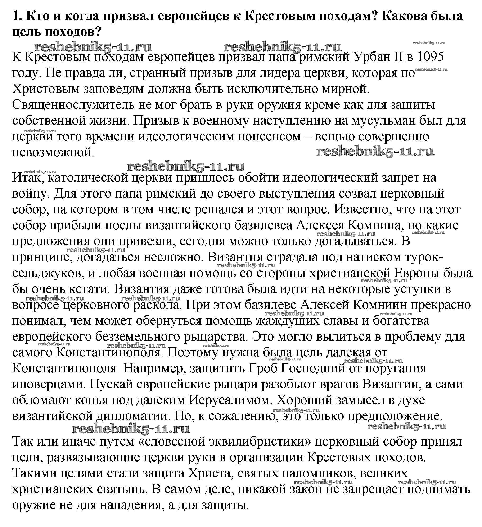 Готовая домашняя работа с ответами по Истории за 6 класс Агибалова, Донской Учебник Просвещение 2014 ФГОС - Проверьте себя 1