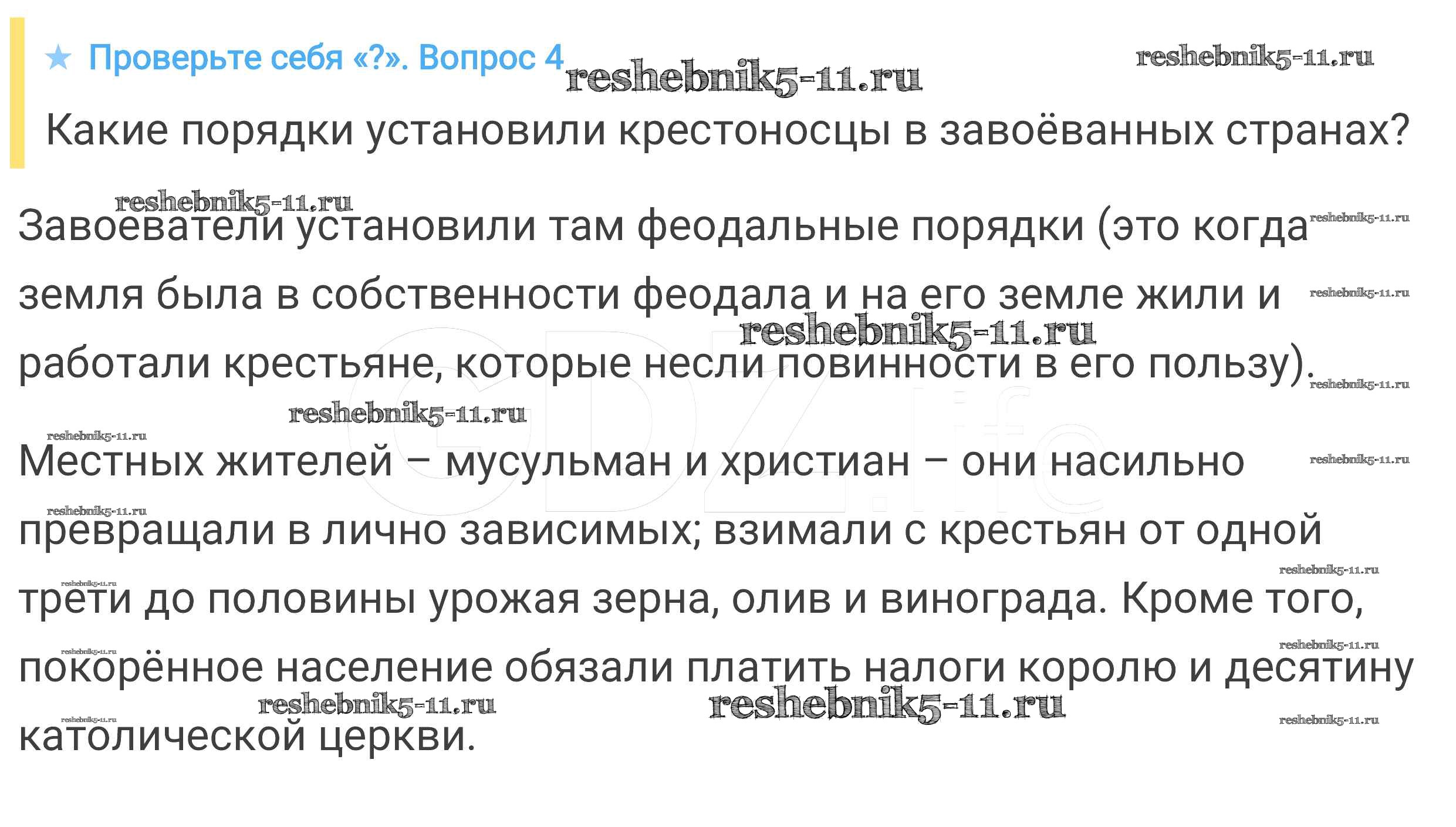 Готовая домашняя работа с ответами по Истории за 6 класс Агибалова, Донской Учебник Просвещение 2014 ФГОС - Проверьте себя 4