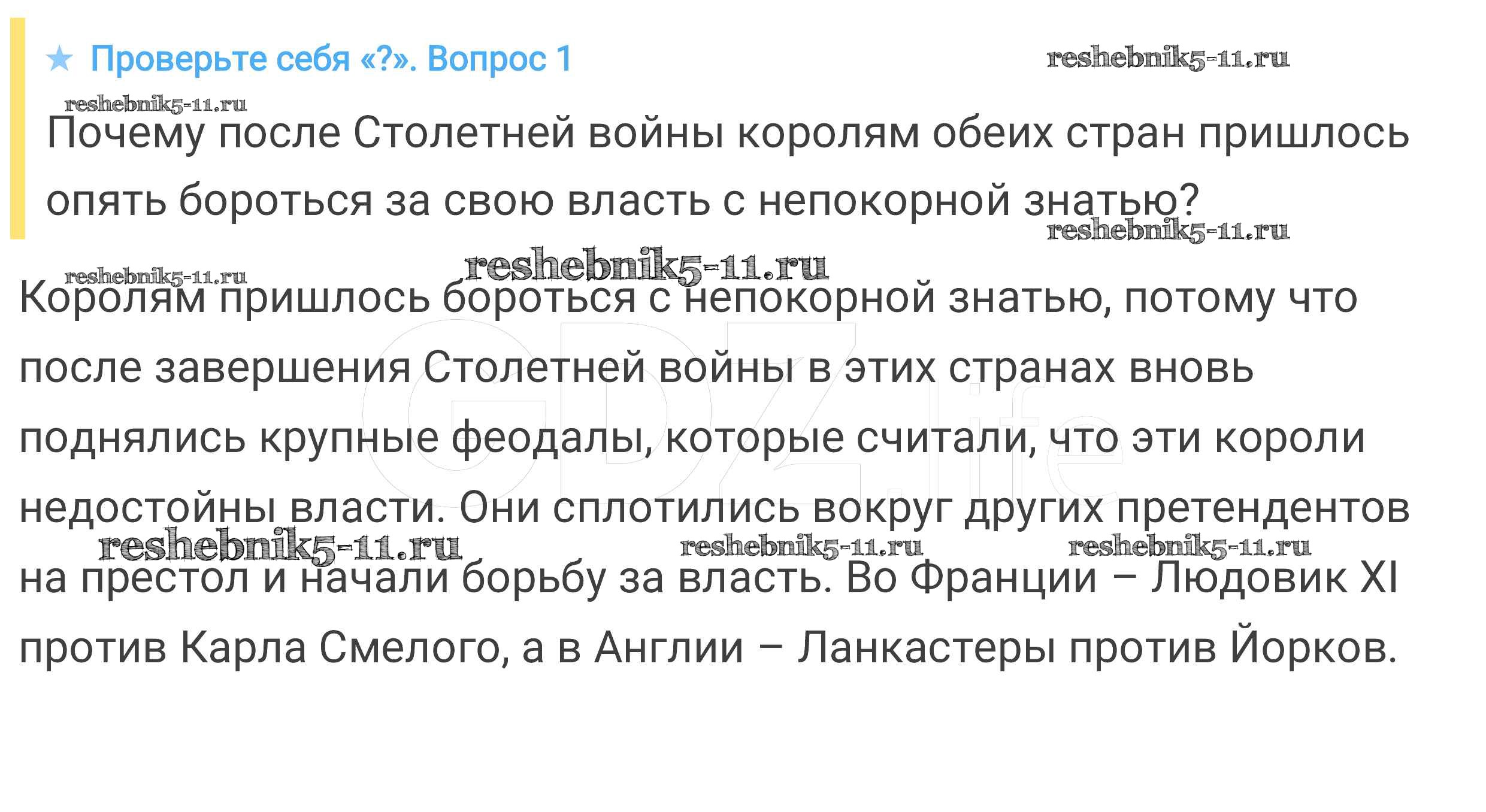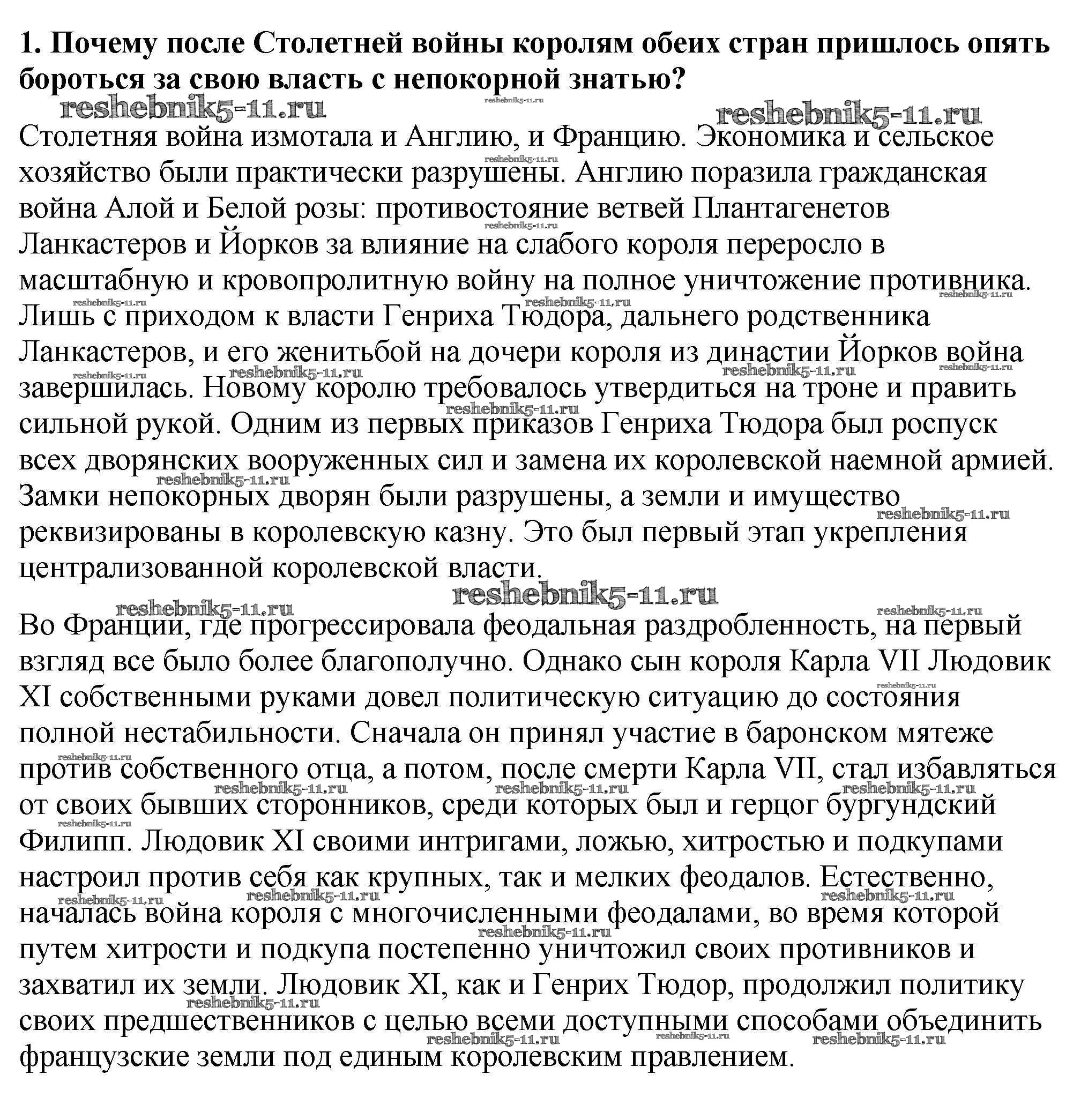 Готовая домашняя работа с ответами по Истории за 6 класс Агибалова, Донской Учебник Просвещение 2014 ФГОС - Проверьте себя 1