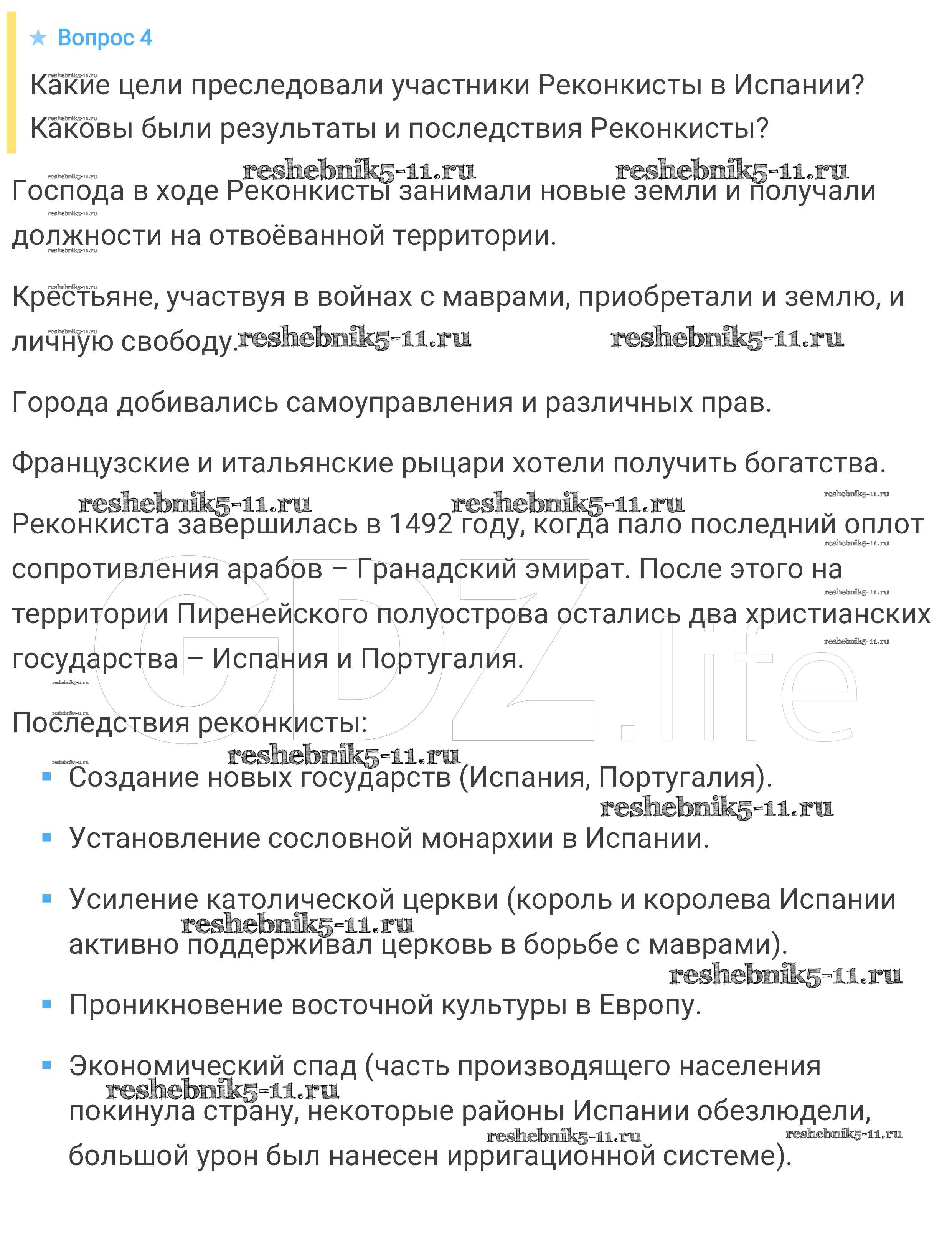 Готовая домашняя работа с ответами по Истории за 6 класс Агибалова, Донской Учебник Просвещение 2014 ФГОС - Вопросы и задания к главе 4