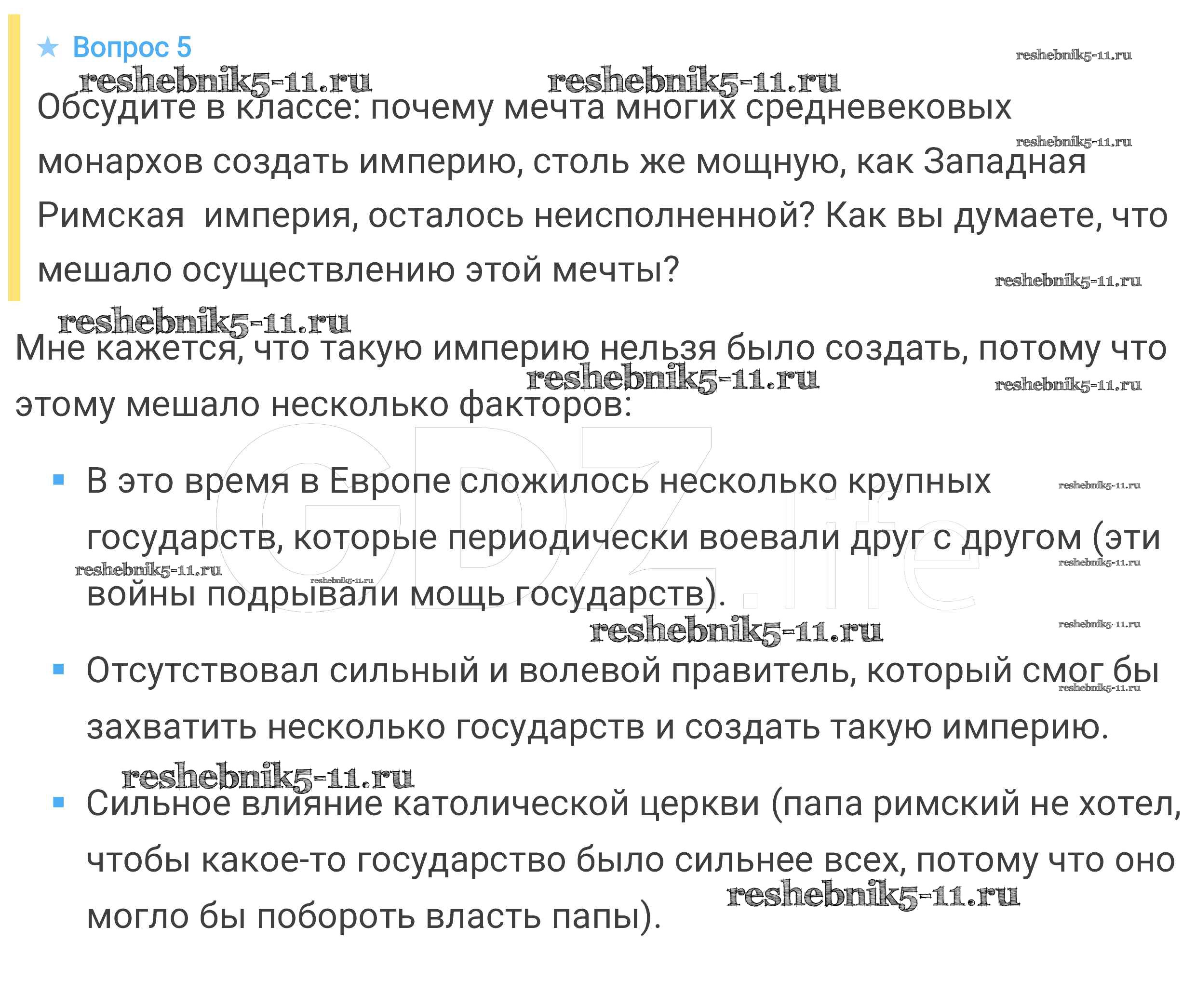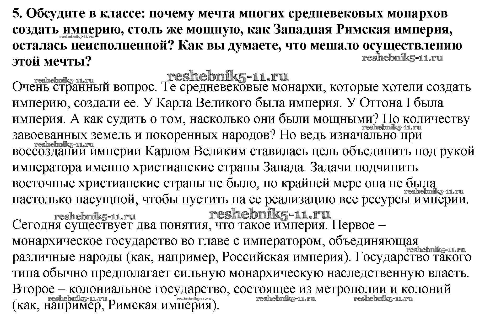 Готовая домашняя работа с ответами по Истории за 6 класс Агибалова, Донской Учебник Просвещение 2014 ФГОС - Вопросы и задания к главе 5