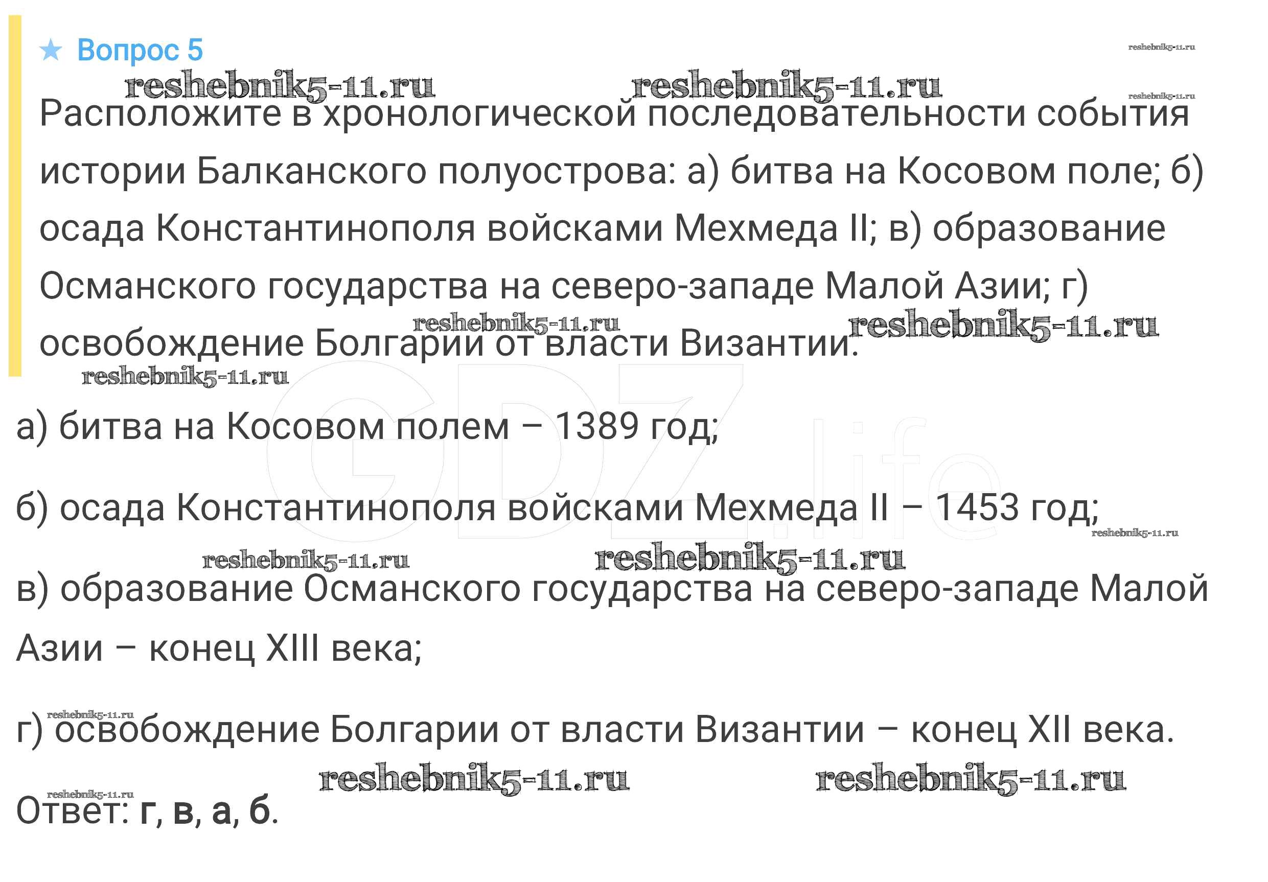 Готовая домашняя работа с ответами по Истории за 6 класс Агибалова, Донской Учебник Просвещение 2014 ФГОС - Вопросы и задания к главе 5
