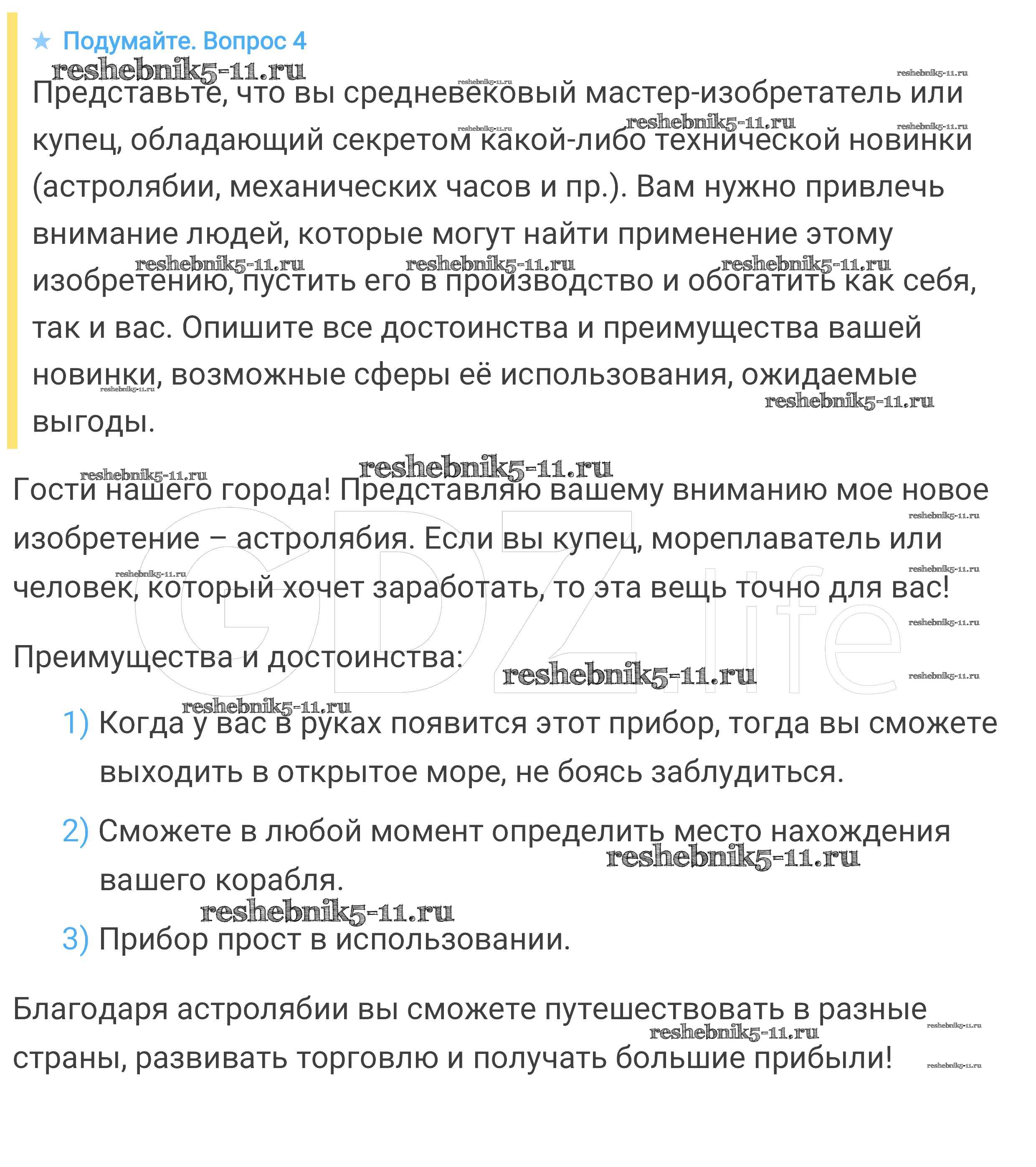 История за 6 класс Агибалова Учебник Просвещение подумайте 4