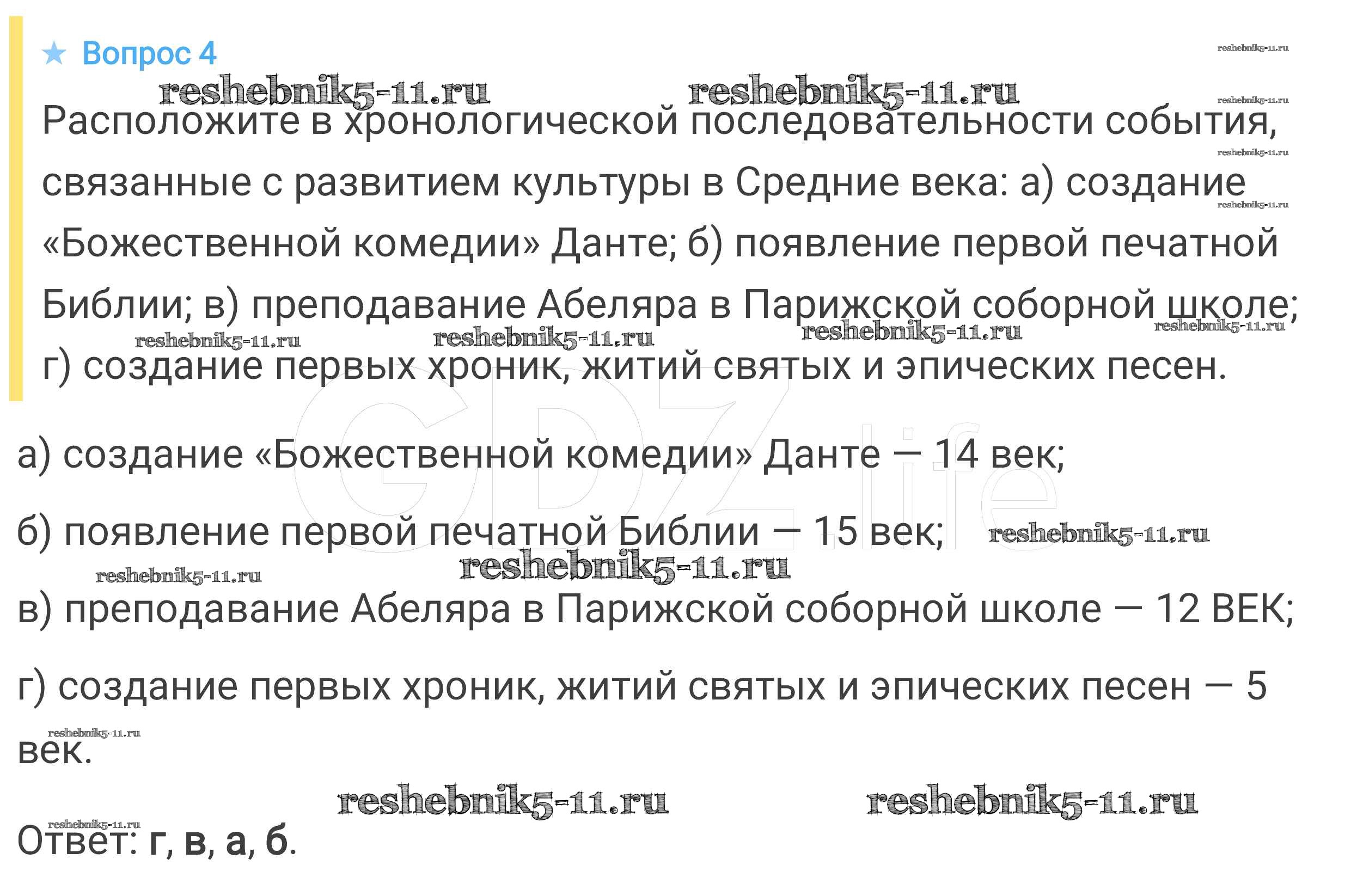 Готовая домашняя работа с ответами по Истории за 6 класс Агибалова, Донской Учебник Просвещение 2014 ФГОС - Вопросы и задания к главе 4