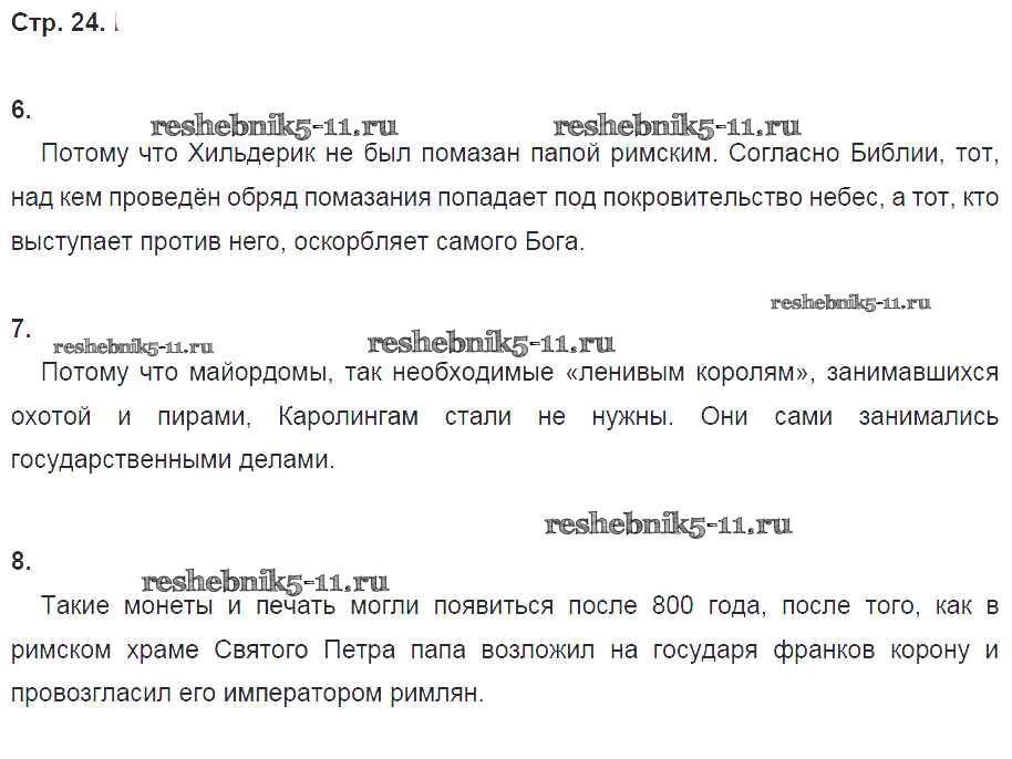 Готовая домашняя работа с ответами по Истории за 6 класс Петрова Рабочая тетрадь Инновационная школа Русское слово 2017 ФГОС - Глава 3. Держава франков стр. 24