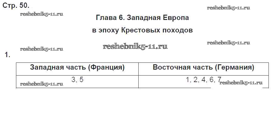 Готовая домашняя работа с ответами по Истории за 6 класс Петрова Рабочая тетрадь Инновационная школа Русское слово 2017 ФГОС - Глава 6. Западная Европа в эпоху Крестовых походов стр. 50