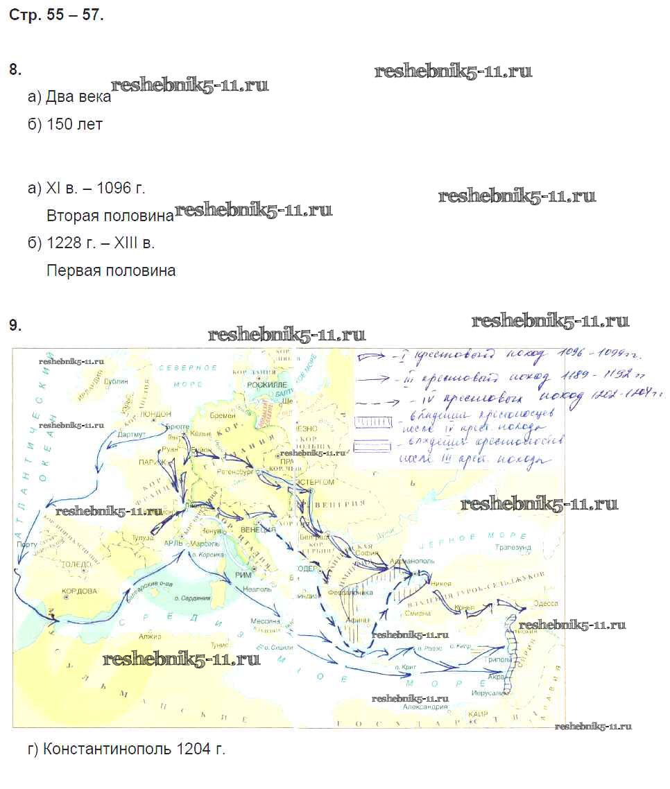 Готовая домашняя работа с ответами по Истории за 6 класс Петрова Рабочая тетрадь Инновационная школа Русское слово 2017 ФГОС - Глава 6. Западная Европа в эпоху Крестовых походов стр. 55