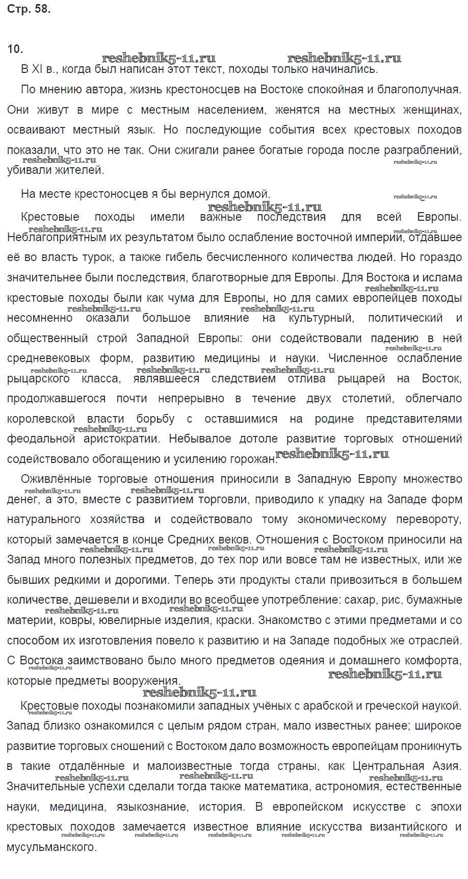 Готовая домашняя работа с ответами по Истории за 6 класс Петрова Рабочая тетрадь Инновационная школа Русское слово 2017 ФГОС - Глава 6. Западная Европа в эпоху Крестовых походов стр. 58