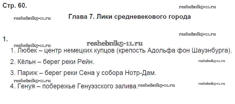 Готовая домашняя работа с ответами по Истории за 6 класс Петрова Рабочая тетрадь Инновационная школа Русское слово 2017 ФГОС - Глава 7. Лики средневекового города стр. 60
