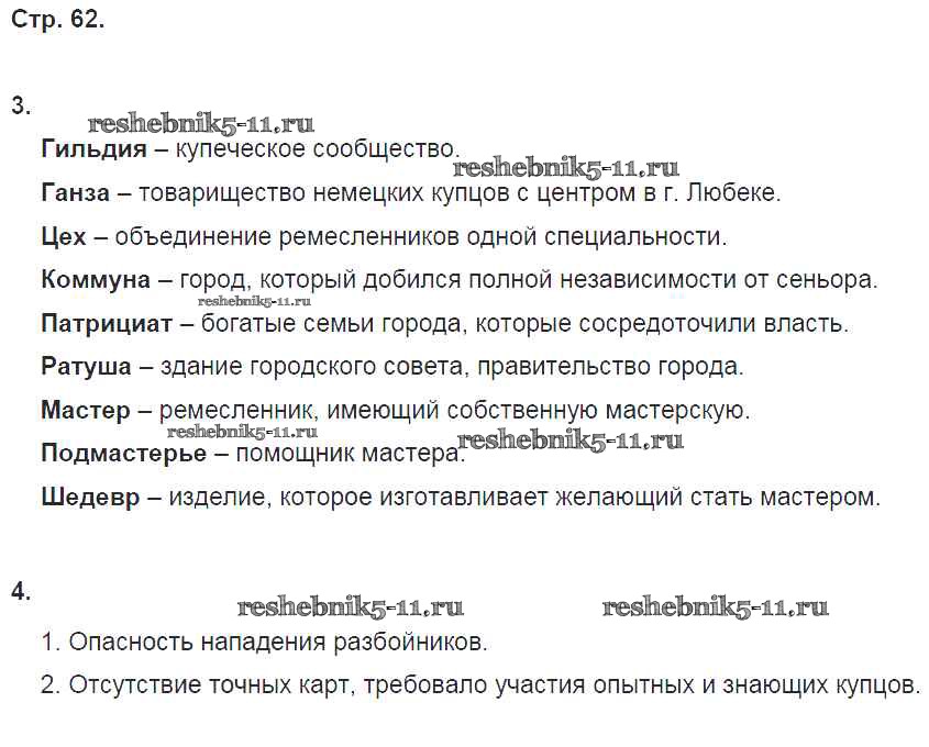 Готовая домашняя работа с ответами по Истории за 6 класс Петрова Рабочая тетрадь Инновационная школа Русское слово 2017 ФГОС - Глава 7. Лики средневекового города стр. 62
