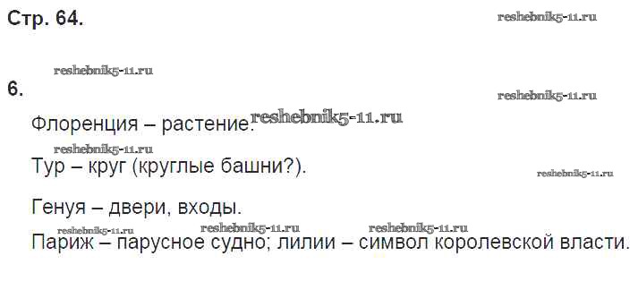 Готовая домашняя работа с ответами по Истории за 6 класс Петрова Рабочая тетрадь Инновационная школа Русское слово 2017 ФГОС - Глава 7. Лики средневекового города стр. 64