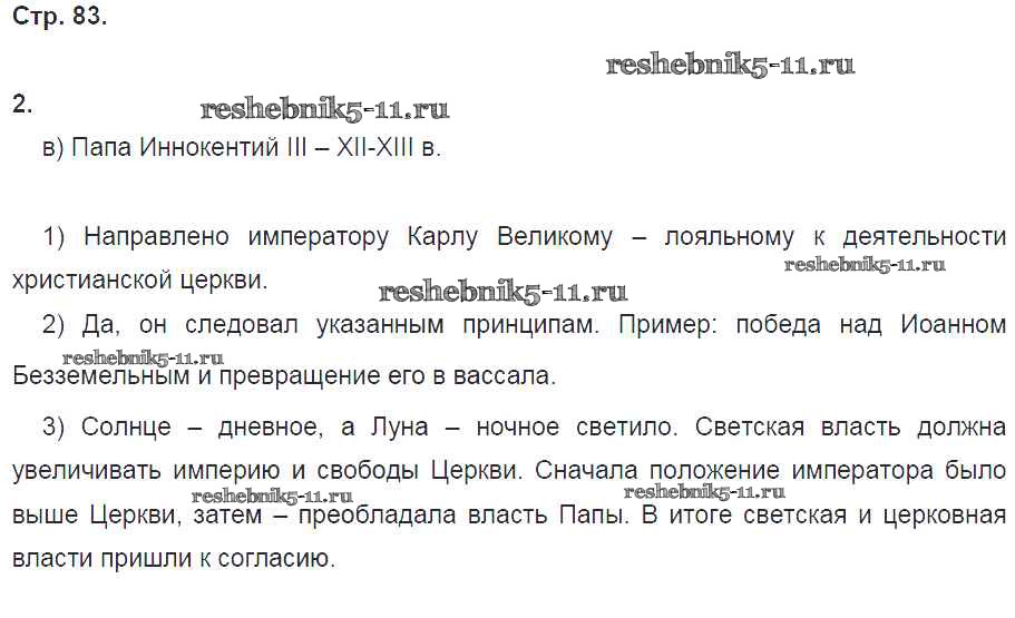 Готовая домашняя работа с ответами по Истории за 6 класс Петрова Рабочая тетрадь Инновационная школа Русское слово 2017 ФГОС - Глава 8. Вершина Средневековья стр. 83