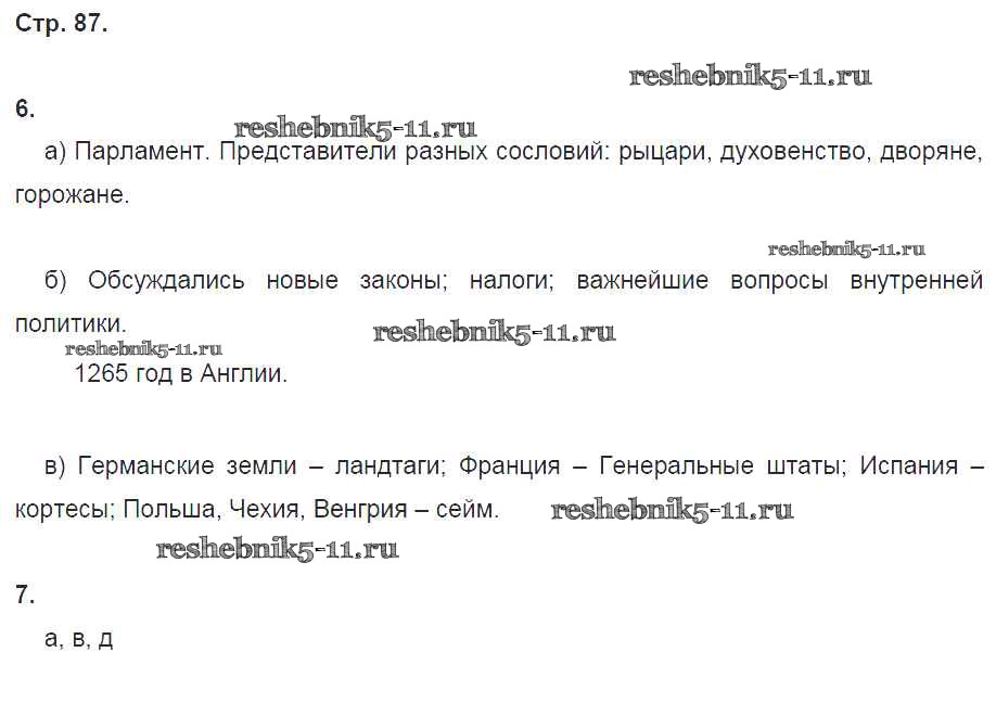 Готовая домашняя работа с ответами по Истории за 6 класс Петрова Рабочая тетрадь Инновационная школа Русское слово 2017 ФГОС - Глава 8. Вершина Средневековья стр. 87
