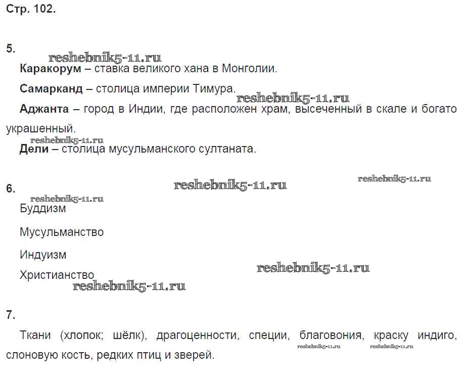 Готовая домашняя работа с ответами по Истории за 6 класс Петрова Рабочая тетрадь Инновационная школа Русское слово 2017 ФГОС - Глава 9. Где был и и где не был Марко Поло стр. 102