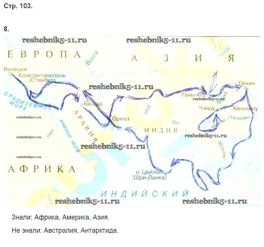 Готовая домашняя работа с ответами по Истории за 6 класс Петрова Рабочая тетрадь Инновационная школа Русское слово 2017 ФГОС - Глава 9. Где был и и где не был Марко Поло стр. 103