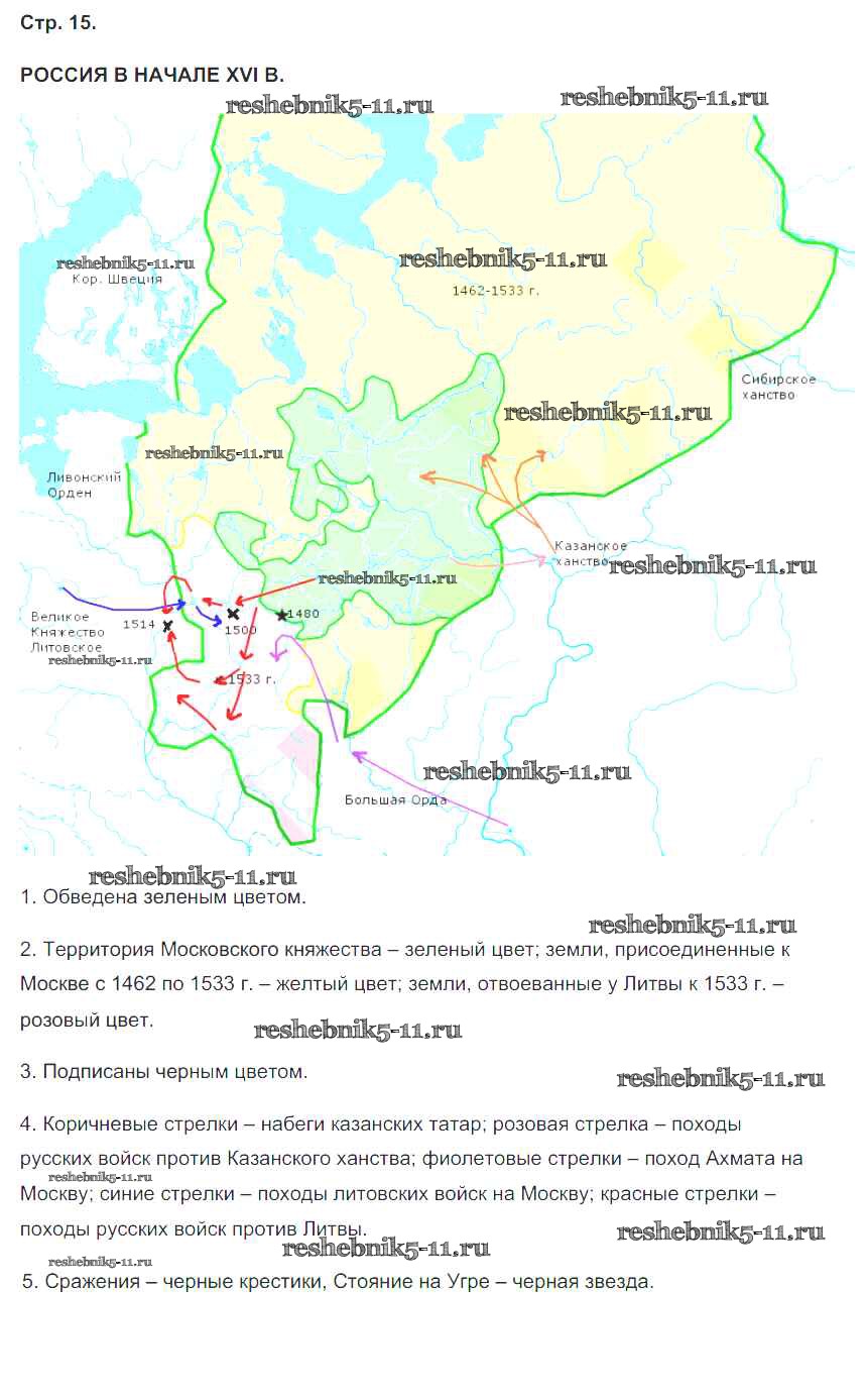 Готовая домашняя работа с ответами по Истории за 6 класс Пчелов Контурные карты Русское слово 2017 ФГОС - Страницы контурной карты 15
