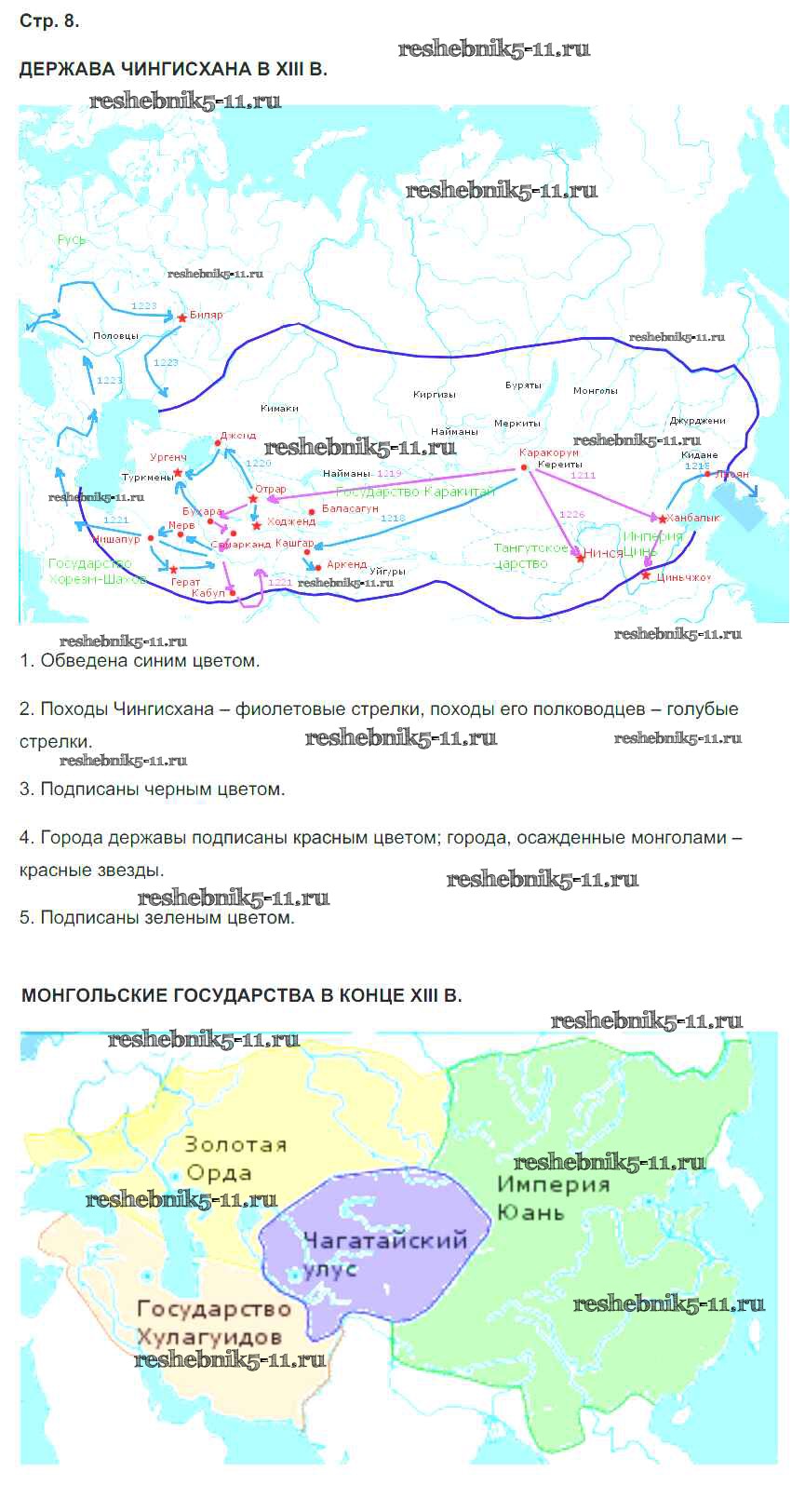 Готовая домашняя работа с ответами по Истории за 6 класс Пчелов Контурные карты Русское слово 2017 ФГОС - Страницы контурной карты 8