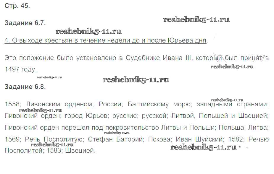 Готовая домашняя работа с ответами по Истории за 6 класс Симонова Рабочая тетрадь с контурными картами УМК Экзамен 2018 ФГОС - Страницы 45
