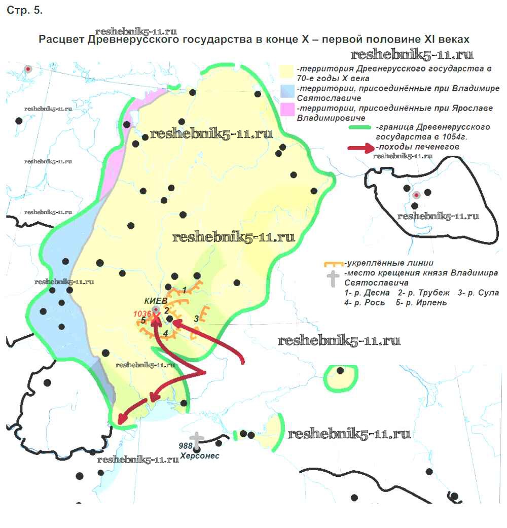 Готовая домашняя работа с ответами по Истории за 6 класс Тороп Контурные карты УМК Просвещение 2015 ФГОС - Русь в IX - первой XII века страница 5