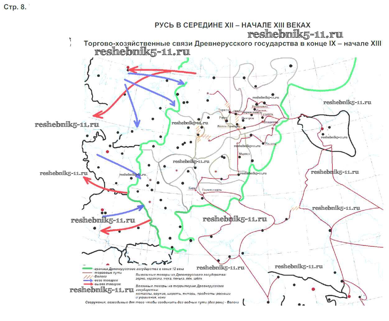 Готовая домашняя работа с ответами по Истории за 6 класс Тороп Контурные карты УМК Просвещение 2015 ФГОС - Русь в середине XII - начале XIII века страница 8