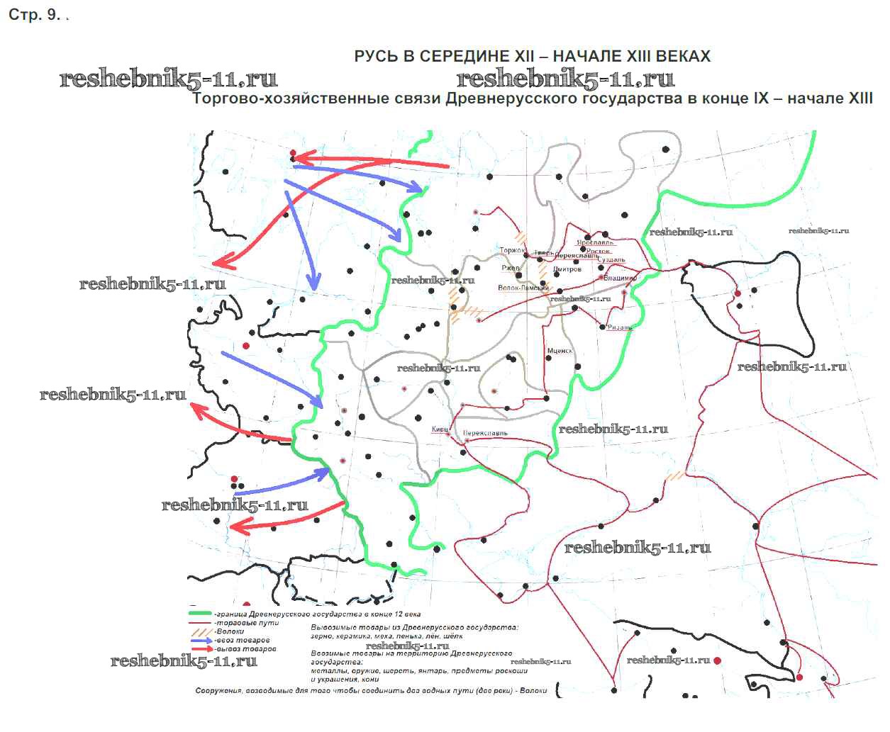 Готовая домашняя работа с ответами по Истории за 6 класс Тороп Контурные карты УМК Просвещение 2015 ФГОС - Русь в середине XII - начале XIII века страница 9