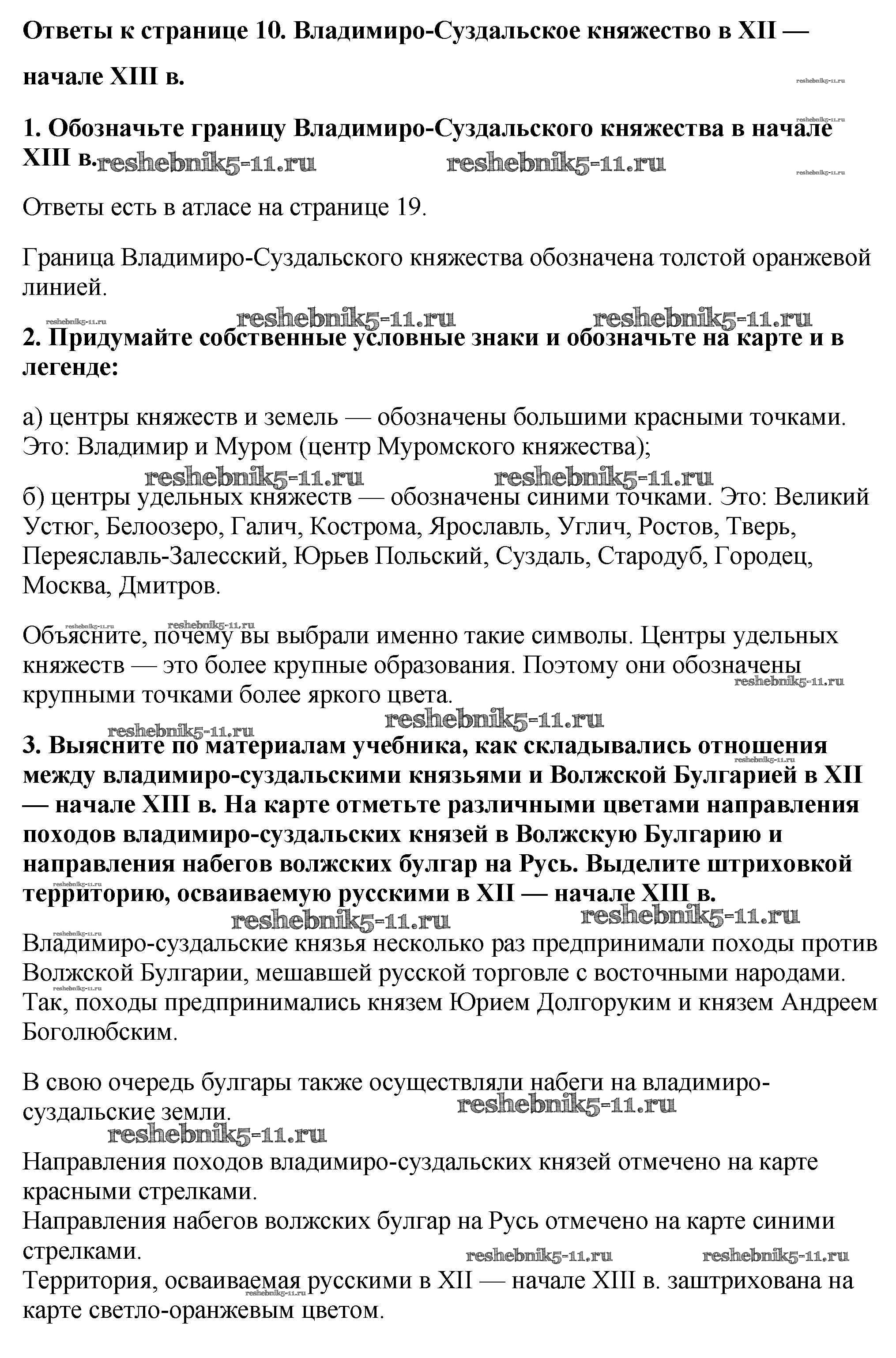 Готовая домашняя работа с ответами по Истории за 6 класс Тороп Контурные карты УМК Дрофа 2019 ФГОС - Страницы Страница 10. Владимиро-Суздальское княжество в 11 - 13 в.