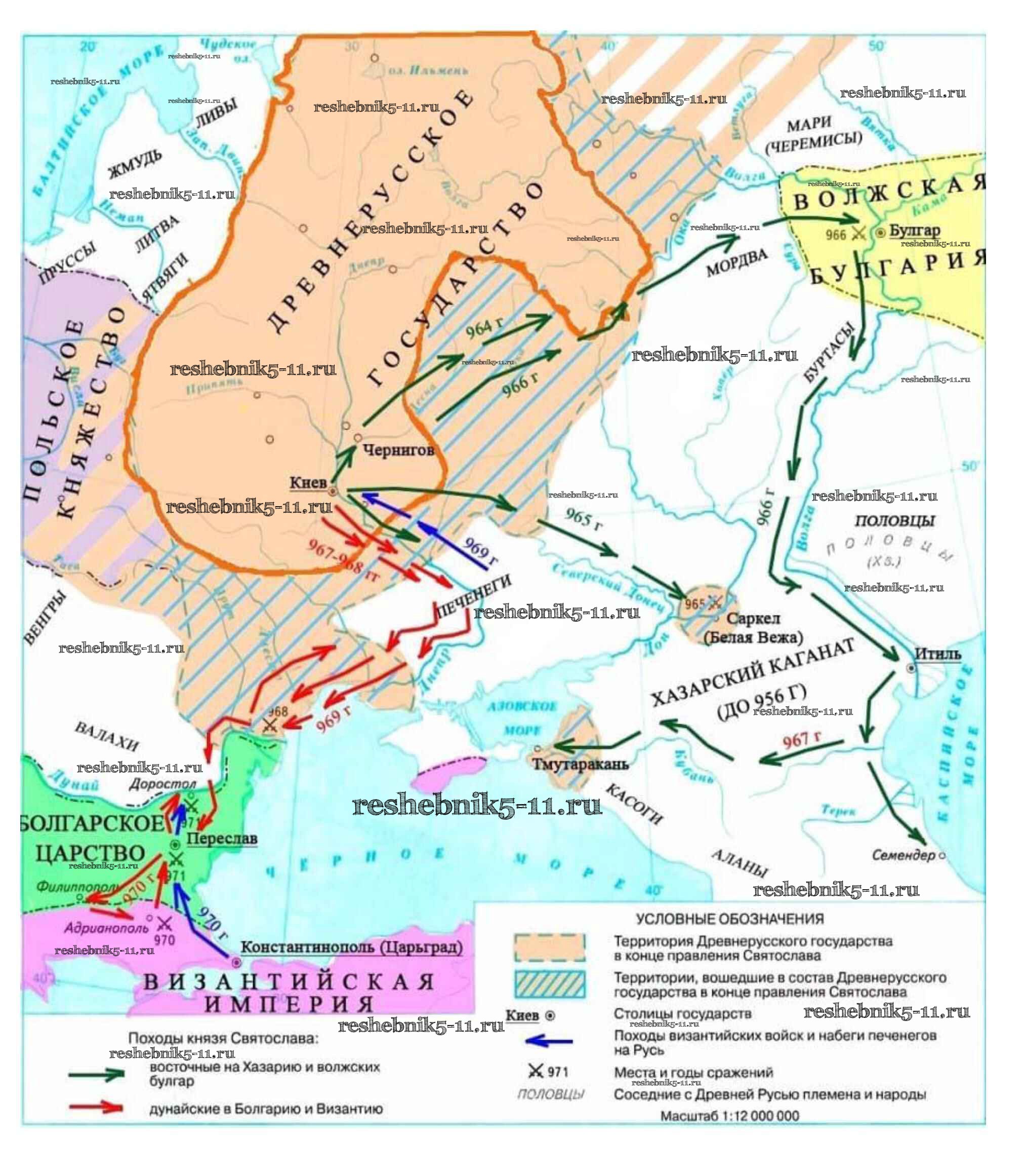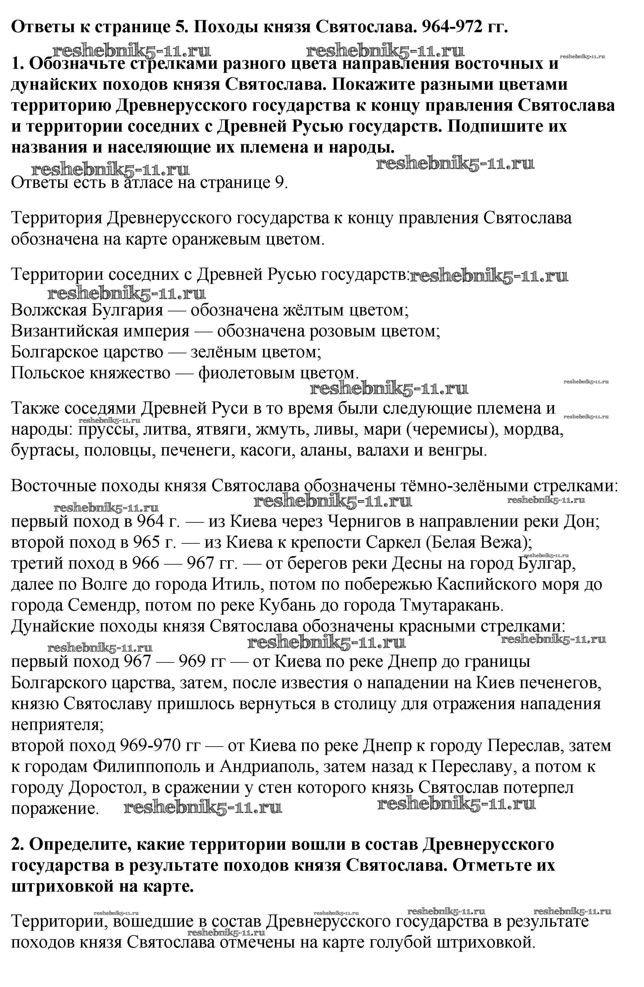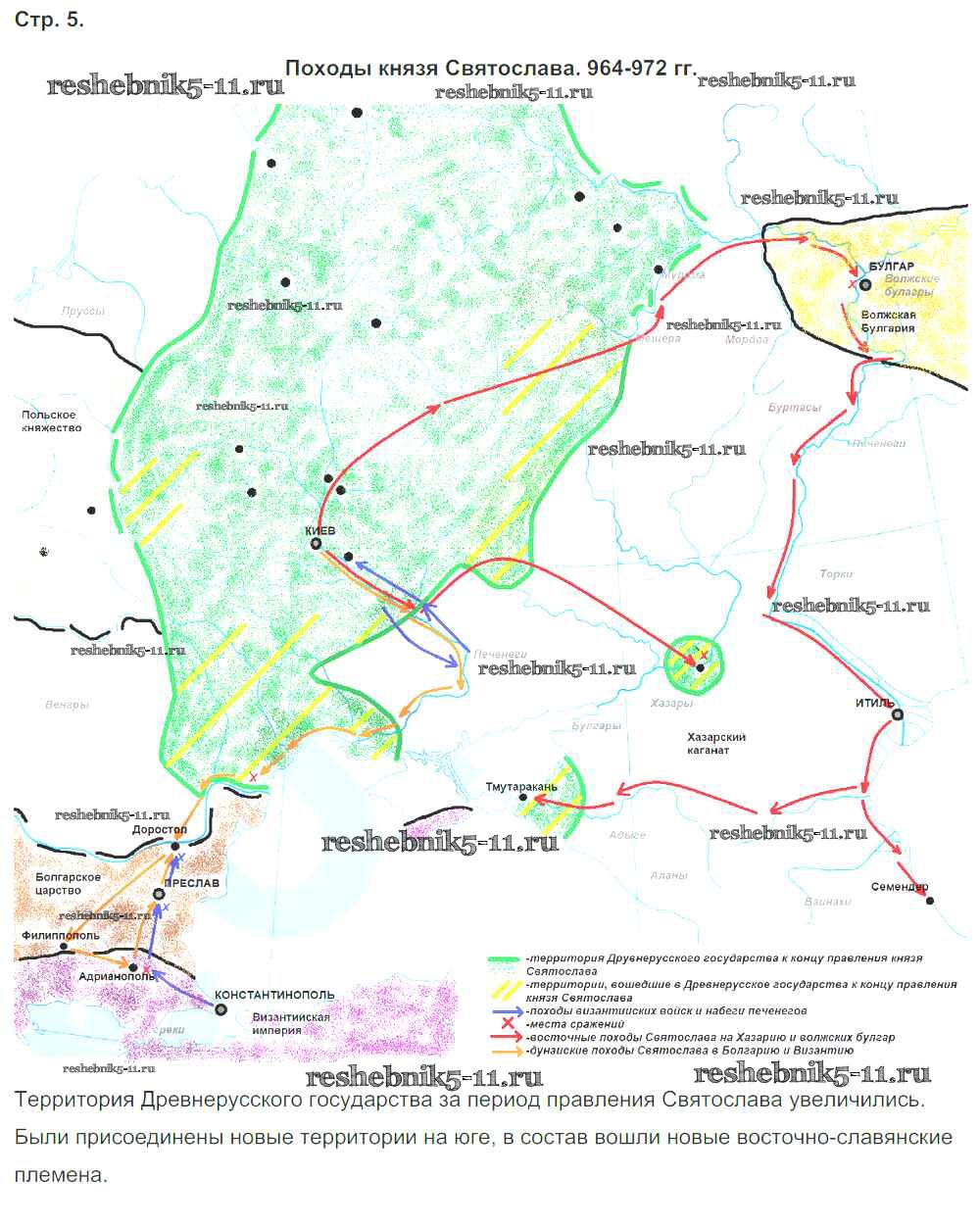 Готовая домашняя работа с ответами по Истории за 6 класс Тороп Контурные карты УМК Дрофа 2019 ФГОС - Страницы Страница 5. Походы князя Святослава. 964-972 гг.
