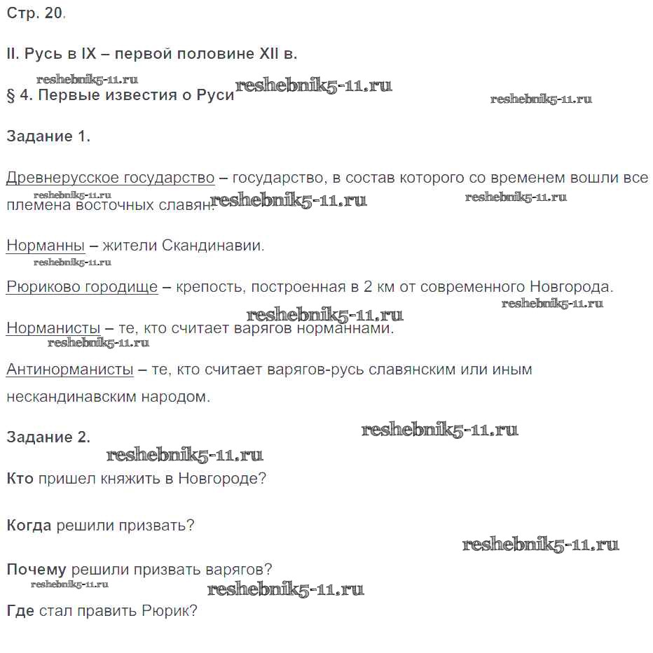 Готовая домашняя работа с ответами по Истории за 6 класс Чернова Рабочая тетрадь УМК Часть 1, 2 Экзамен 2017 ФГОС - Часть 1. Страницы 20