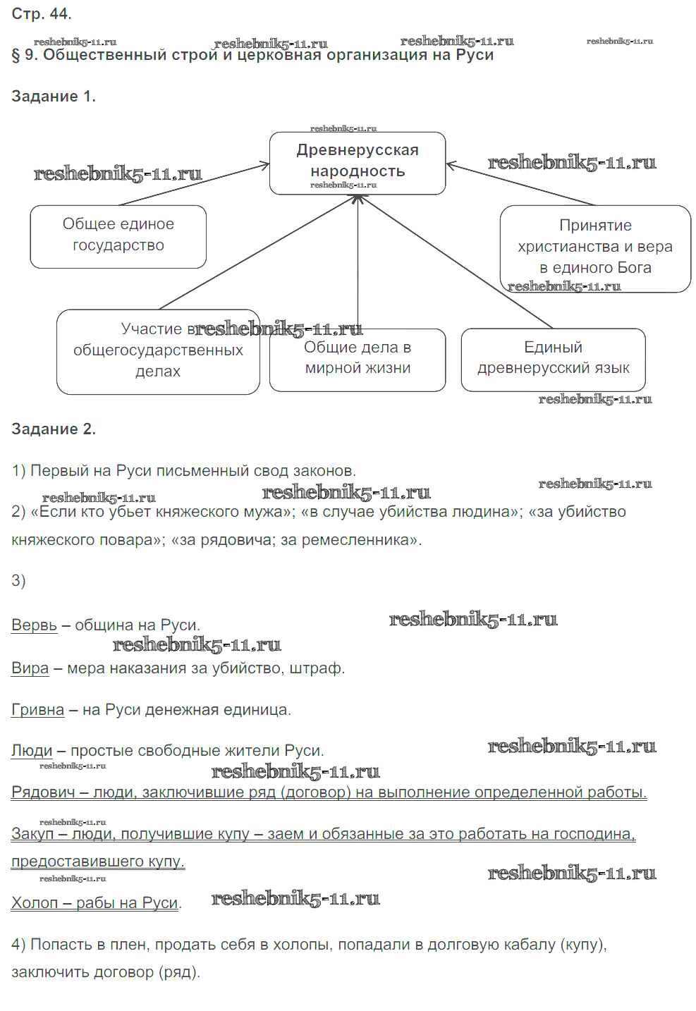Готовая домашняя работа с ответами по Истории за 6 класс Чернова Рабочая тетрадь УМК Часть 1, 2 Экзамен 2017 ФГОС - Часть 1. Страницы 44
