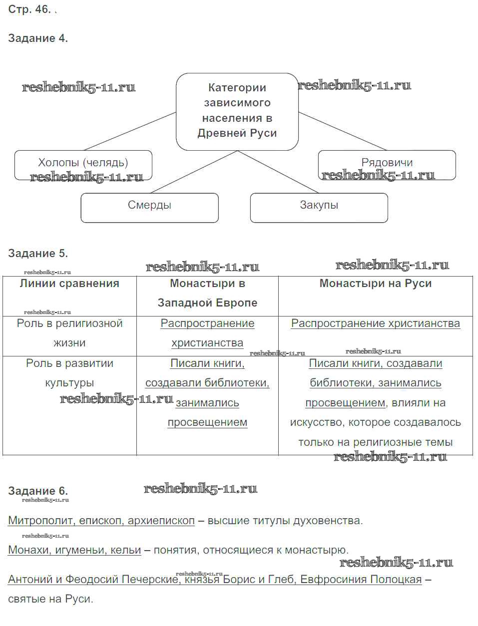 Готовая домашняя работа с ответами по Истории за 6 класс Чернова Рабочая тетрадь УМК Часть 1, 2 Экзамен 2017 ФГОС - Часть 1. Страницы 46