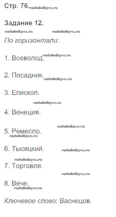 Готовая домашняя работа с ответами по Истории за 6 класс Чернова Рабочая тетрадь УМК Часть 1, 2 Экзамен 2017 ФГОС - Часть 1. Страницы 76