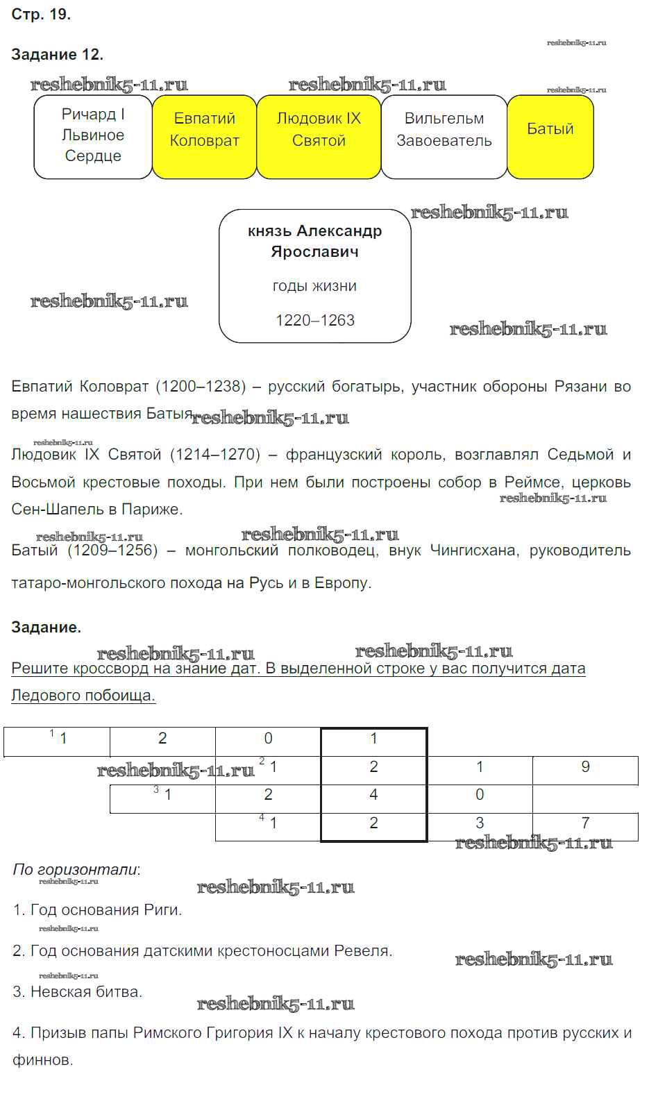 Готовая домашняя работа с ответами по Истории за 6 класс Чернова Рабочая тетрадь УМК Часть 1, 2 Экзамен 2017 ФГОС - Часть 2. Страницы 19