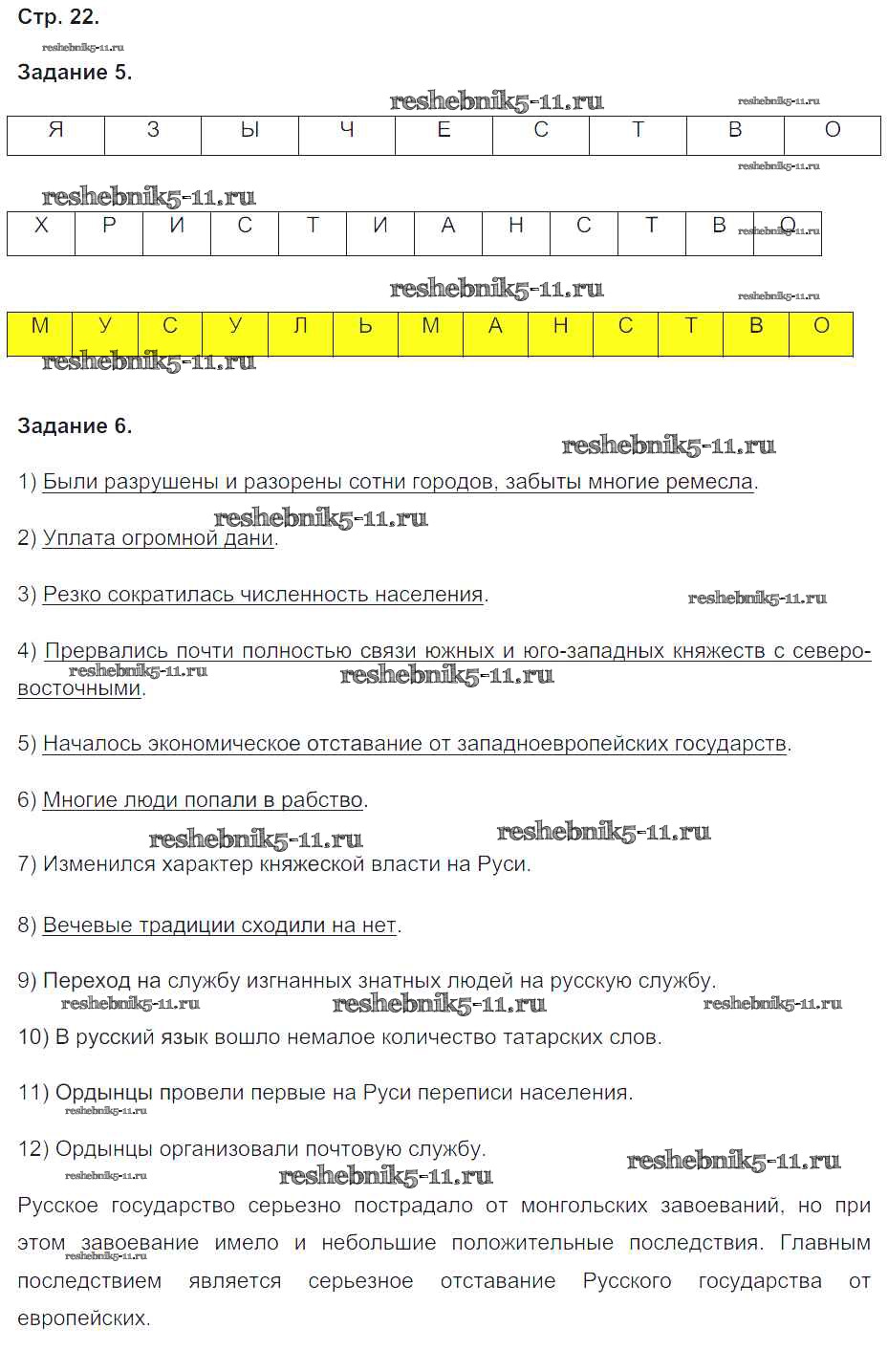 Готовая домашняя работа с ответами по Истории за 6 класс Чернова Рабочая тетрадь УМК Часть 1, 2 Экзамен 2017 ФГОС - Часть 2. Страницы 22