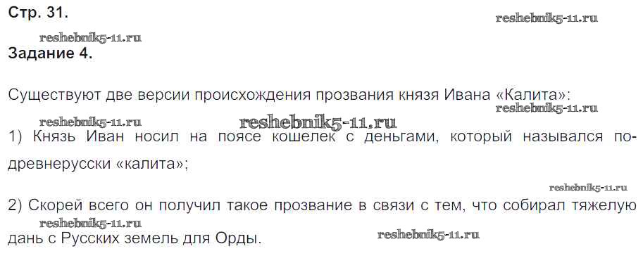 Готовая домашняя работа с ответами по Истории за 6 класс Чернова Рабочая тетрадь УМК Часть 1, 2 Экзамен 2017 ФГОС - Часть 2. Страницы 31