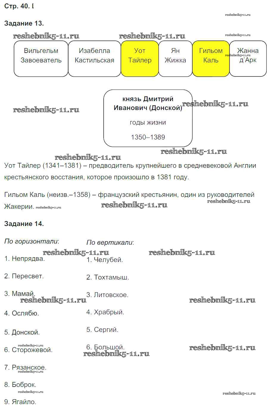 Готовая домашняя работа с ответами по Истории за 6 класс Чернова Рабочая тетрадь УМК Часть 1, 2 Экзамен 2017 ФГОС - Часть 2. Страницы 40