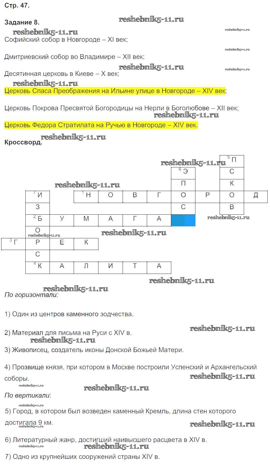 Готовая домашняя работа с ответами по Истории за 6 класс Чернова Рабочая тетрадь УМК Часть 1, 2 Экзамен 2017 ФГОС - Часть 2. Страницы 47