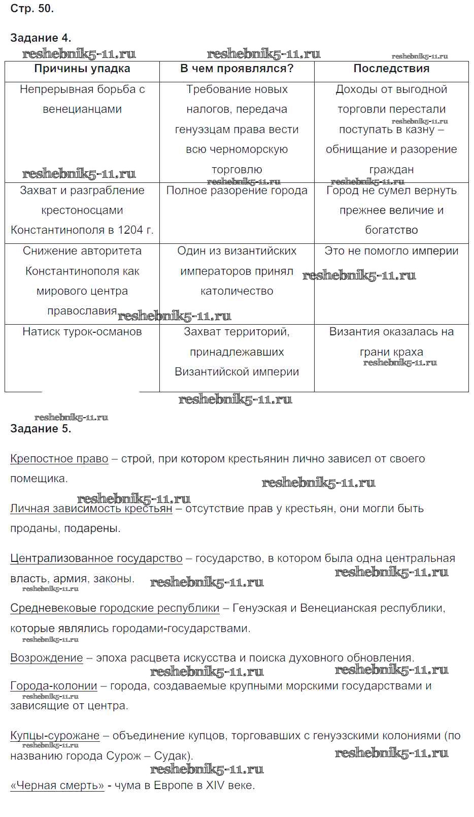 Готовая домашняя работа с ответами по Истории за 6 класс Чернова Рабочая тетрадь УМК Часть 1, 2 Экзамен 2017 ФГОС - Часть 2. Страницы 50