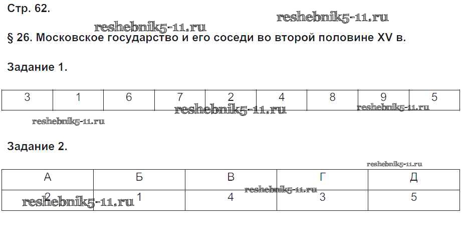 Готовая домашняя работа с ответами по Истории за 6 класс Чернова Рабочая тетрадь УМК Часть 1, 2 Экзамен 2017 ФГОС - Часть 2. Страницы 62