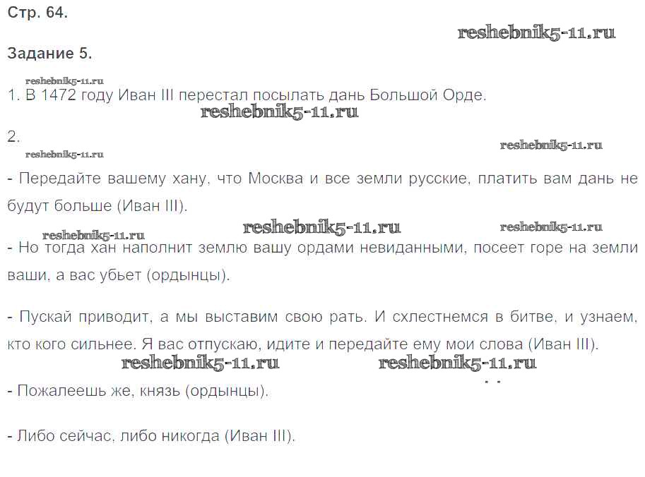 Готовая домашняя работа с ответами по Истории за 6 класс Чернова Рабочая тетрадь УМК Часть 1, 2 Экзамен 2017 ФГОС - Часть 2. Страницы 64