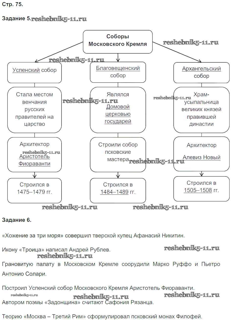 Готовая домашняя работа с ответами по Истории за 6 класс Чернова Рабочая тетрадь УМК Часть 1, 2 Экзамен 2017 ФГОС - Часть 2. Страницы 75