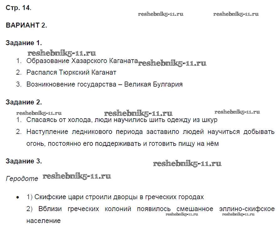 Готовая домашняя работа с ответами по Истории за 6 класс Артасов Контрольные работы УМК Просвещение 2016 ФГОС - Страницы 14