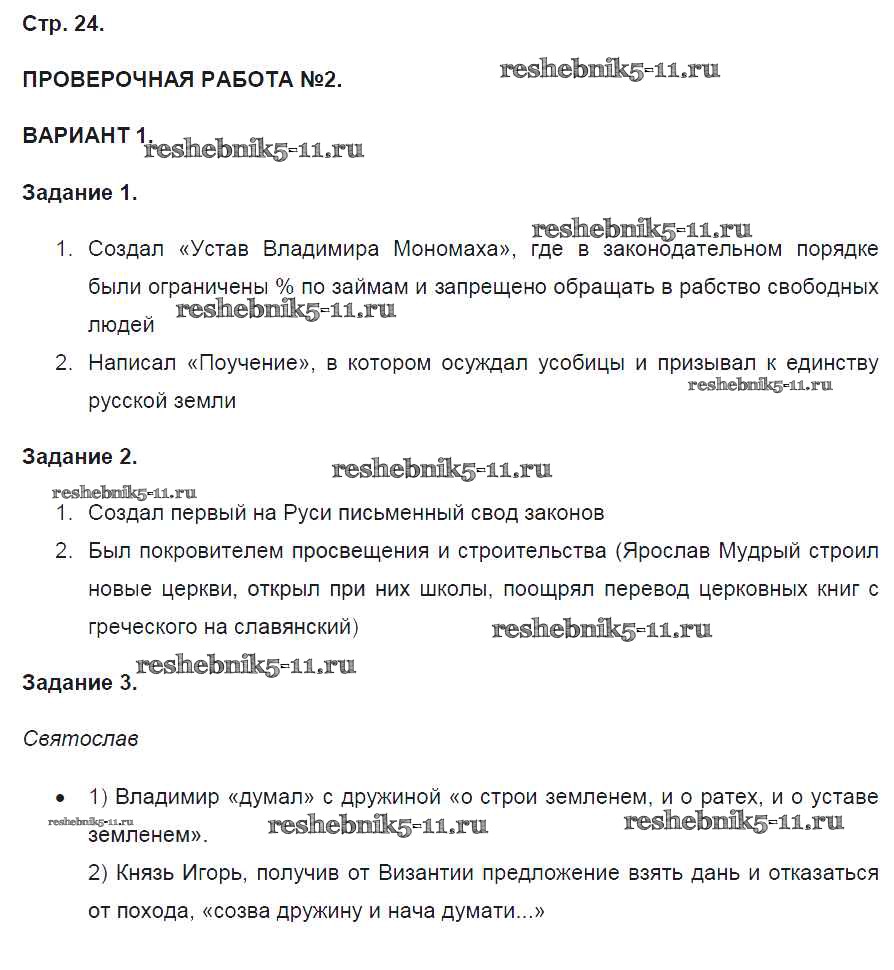 Готовая домашняя работа с ответами по Истории за 6 класс Артасов Контрольные работы УМК Просвещение 2016 ФГОС - Страницы 24