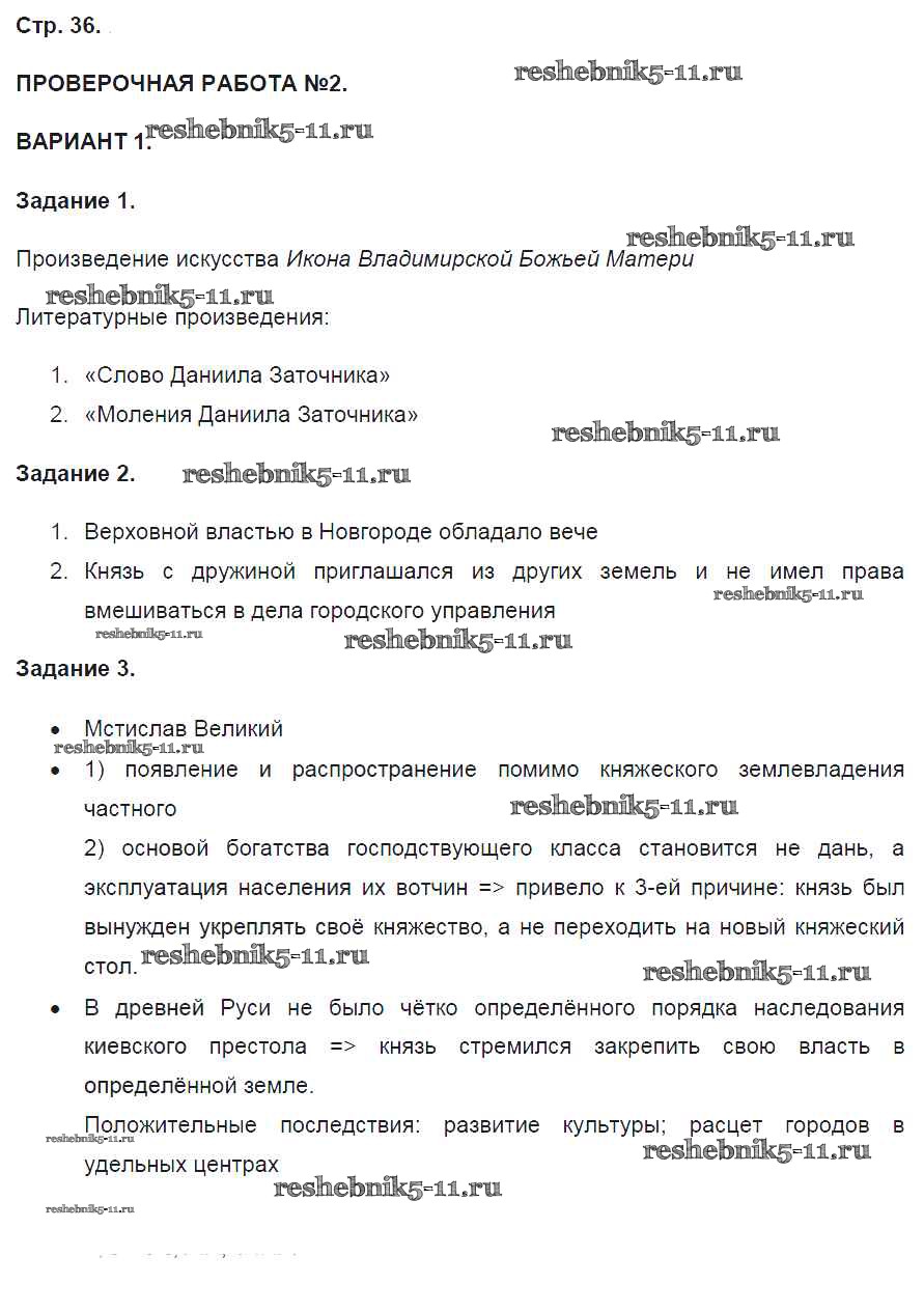 Готовая домашняя работа с ответами по Истории за 6 класс Артасов Контрольные работы УМК Просвещение 2016 ФГОС - Страницы 36
