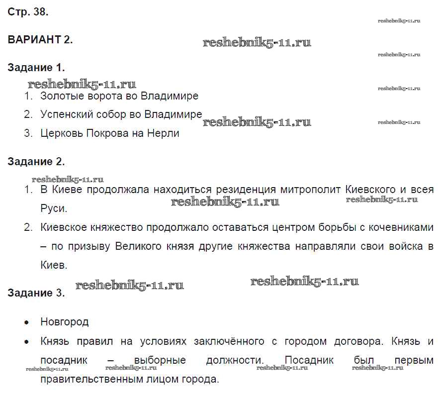 Готовая домашняя работа с ответами по Истории за 6 класс Артасов Контрольные работы УМК Просвещение 2016 ФГОС - Страницы 38