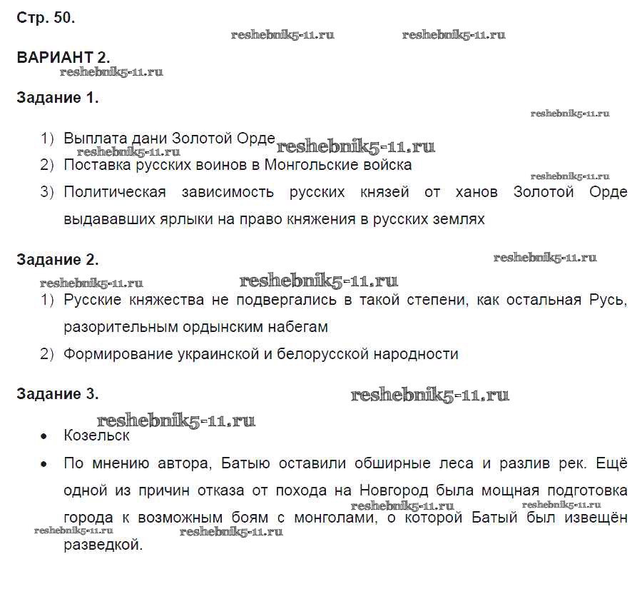 Готовая домашняя работа с ответами по Истории за 6 класс Артасов Контрольные работы УМК Просвещение 2016 ФГОС - Страницы 50