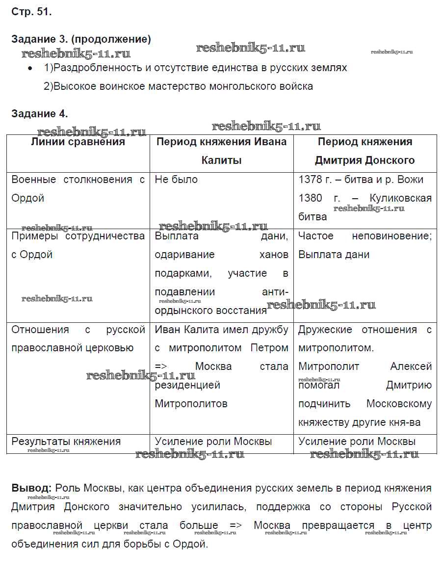 Готовая домашняя работа с ответами по Истории за 6 класс Артасов Контрольные работы УМК Просвещение 2016 ФГОС - Страницы 51