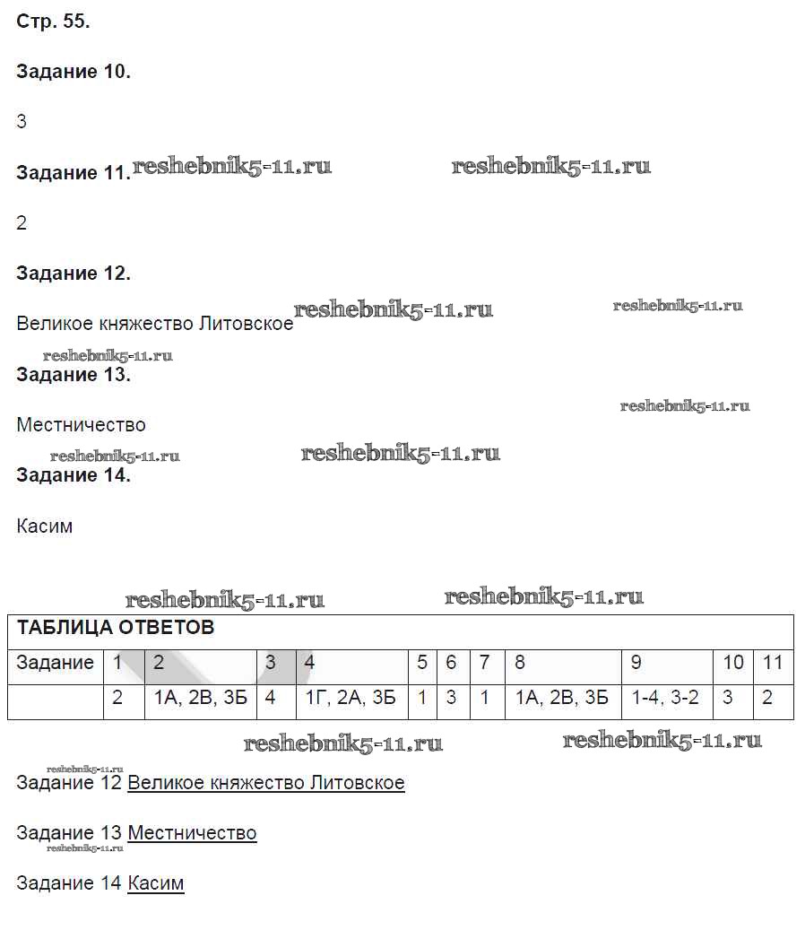 Готовая домашняя работа с ответами по Истории за 6 класс Артасов Контрольные работы УМК Просвещение 2016 ФГОС - Страницы 55