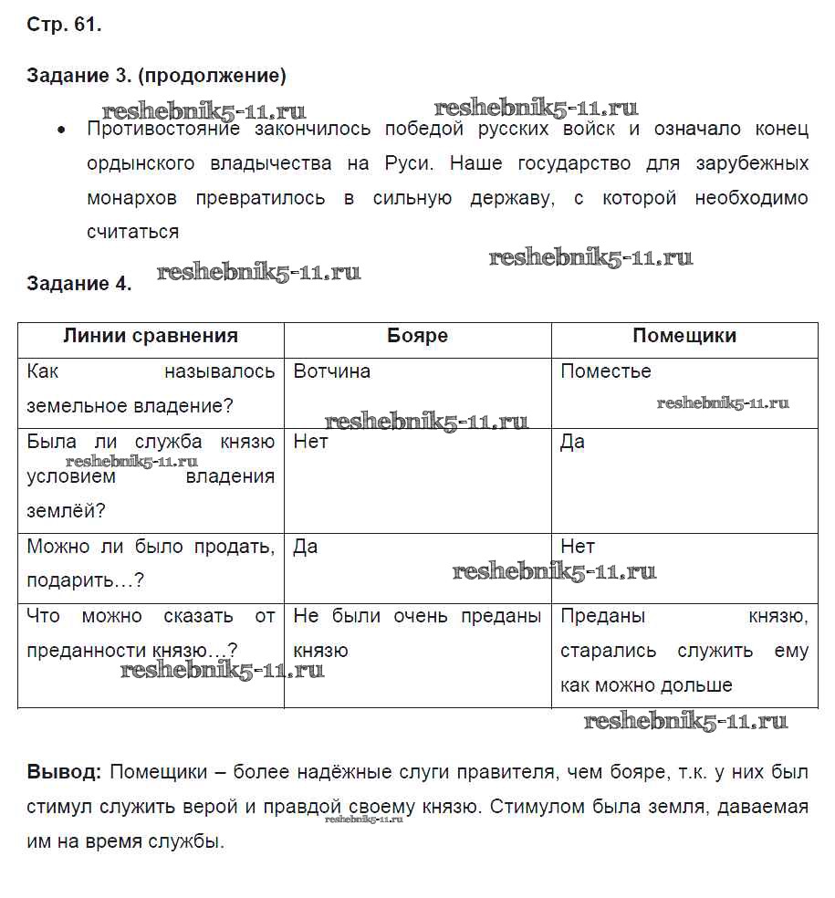 Готовая домашняя работа с ответами по Истории за 6 класс Артасов Контрольные работы УМК Просвещение 2016 ФГОС - Страницы 61